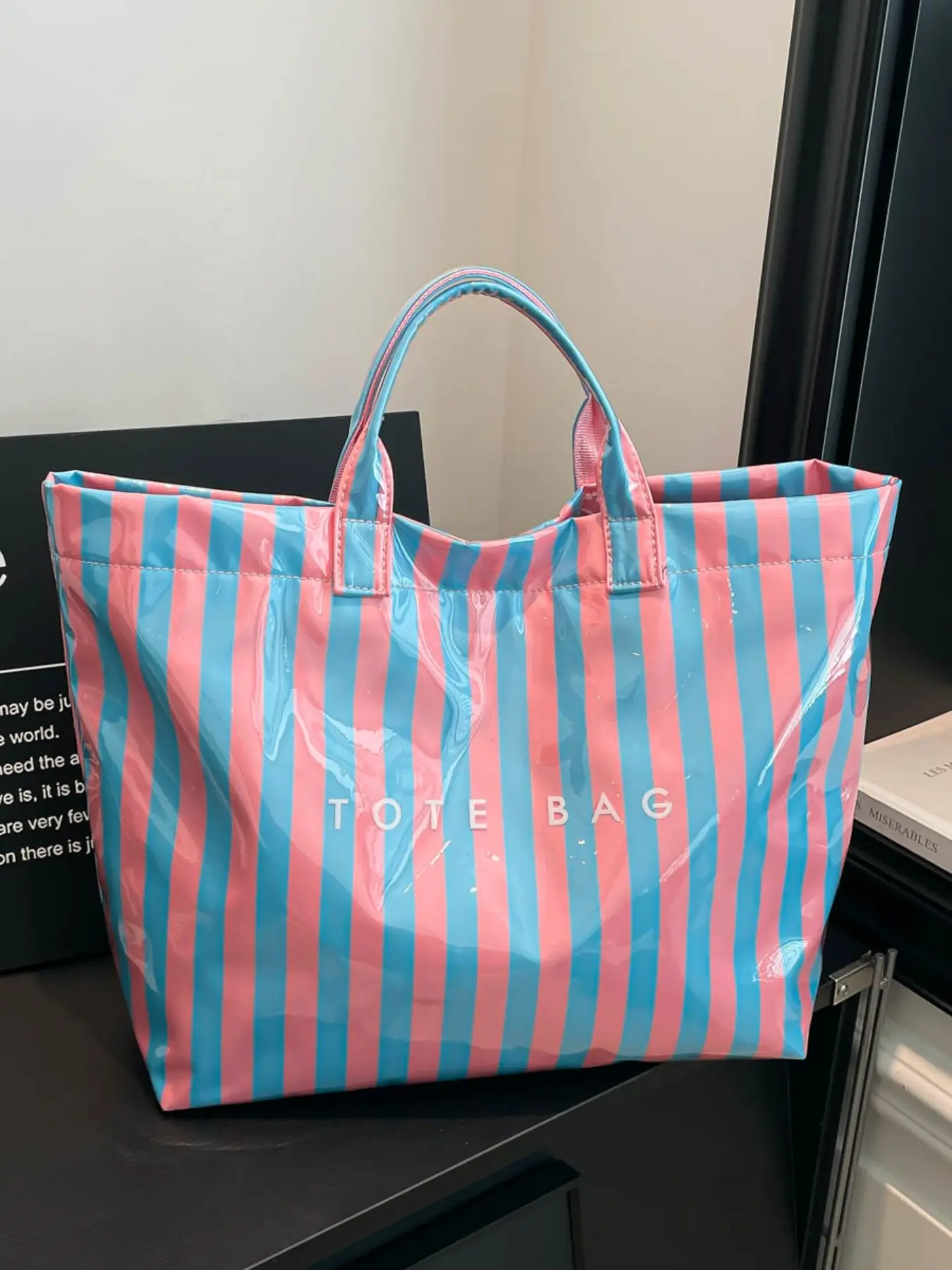 Nice tote. Perfect for summer large capacity and waterproof. Super cute