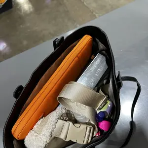 Super love this bag. Very spacious, durable, soft and stylish! My huge tumbler, my chunky make up purse fit without bulking the bag when zippered. Easy to clean, too! I get a lot of compliments! I got it in black and dark brown colors