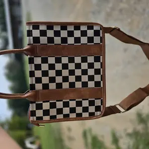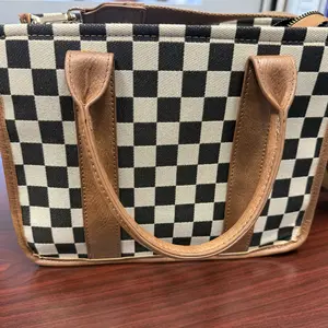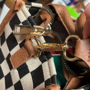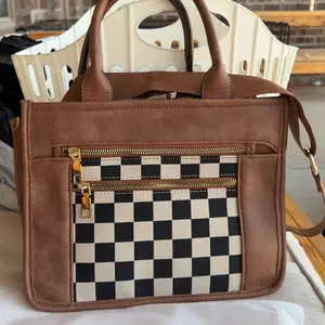 Hate it where the long strap connects on the sides is flimsy and gapes open the sides of the purse. The zipper don't connect from end to end has a big gap as well. The checkers aren't straight instead they go kind of crooked. Very disappointed as I've bought another bag from seller and it was