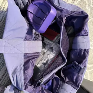 Cloud Purple is gorgeous!This fits all i want in with plenty of space.Love depth, i can fit a 36 oz yeti bottle but its tight, the 25 & 18oz fits best. Pics with 36&26 oz yeti bottles. It’s very well made. I carry a heavy purse and its holding all great! Highly recommend this tote! Thank you Iris!