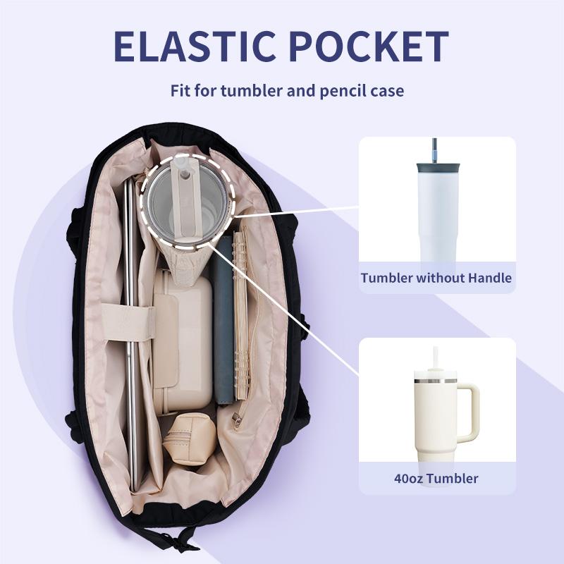 ·【Tumbler-Friendly Design】Designed with an inner elastic pocket to perfectly fit for 40oz Stanley cup. Keep your tumbler secure and easily accessible, whether you’re traveling, working out, or running errands. No more taking up extra space in your tote—stay hydrated with ease!