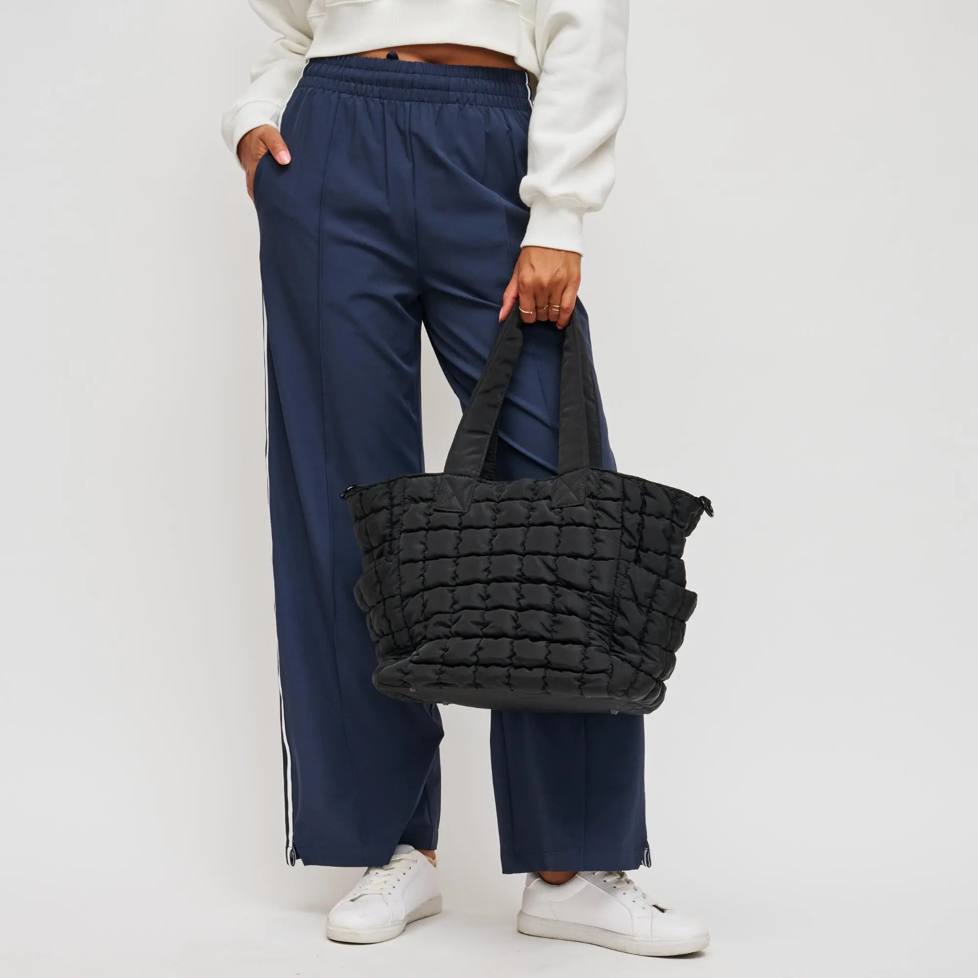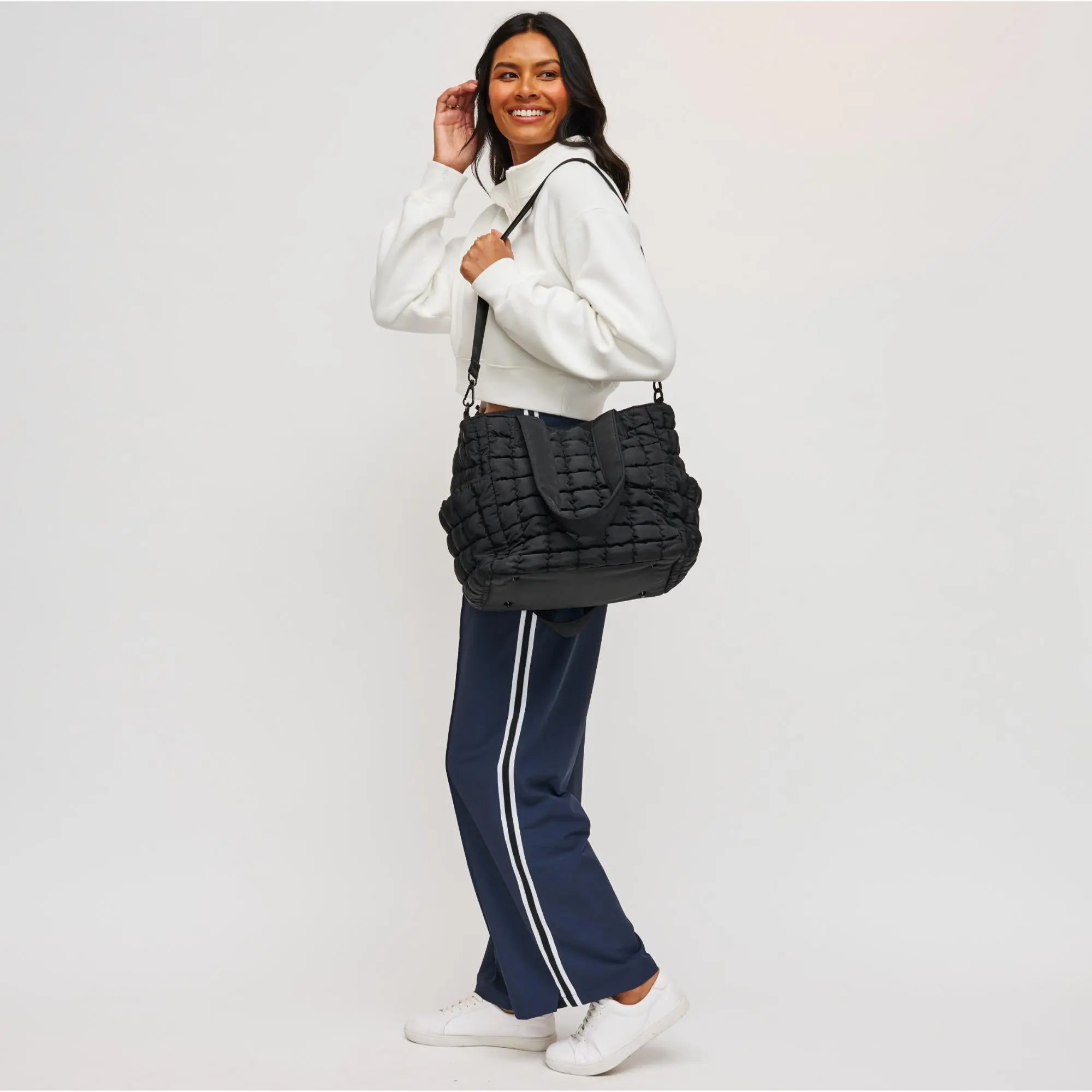 Meet your new favorite tote: The Dreamer Tote Bag! With ample space and a sleek quilted design, this tote seamlessly transitions from workout sessions to weekend adventures. Stay organized and on-trend wherever you go! #solandselene #athleisurewear #athleisurestyle #tote #totebag #gymstyle #gymstylefit #tennisbags #gymbag