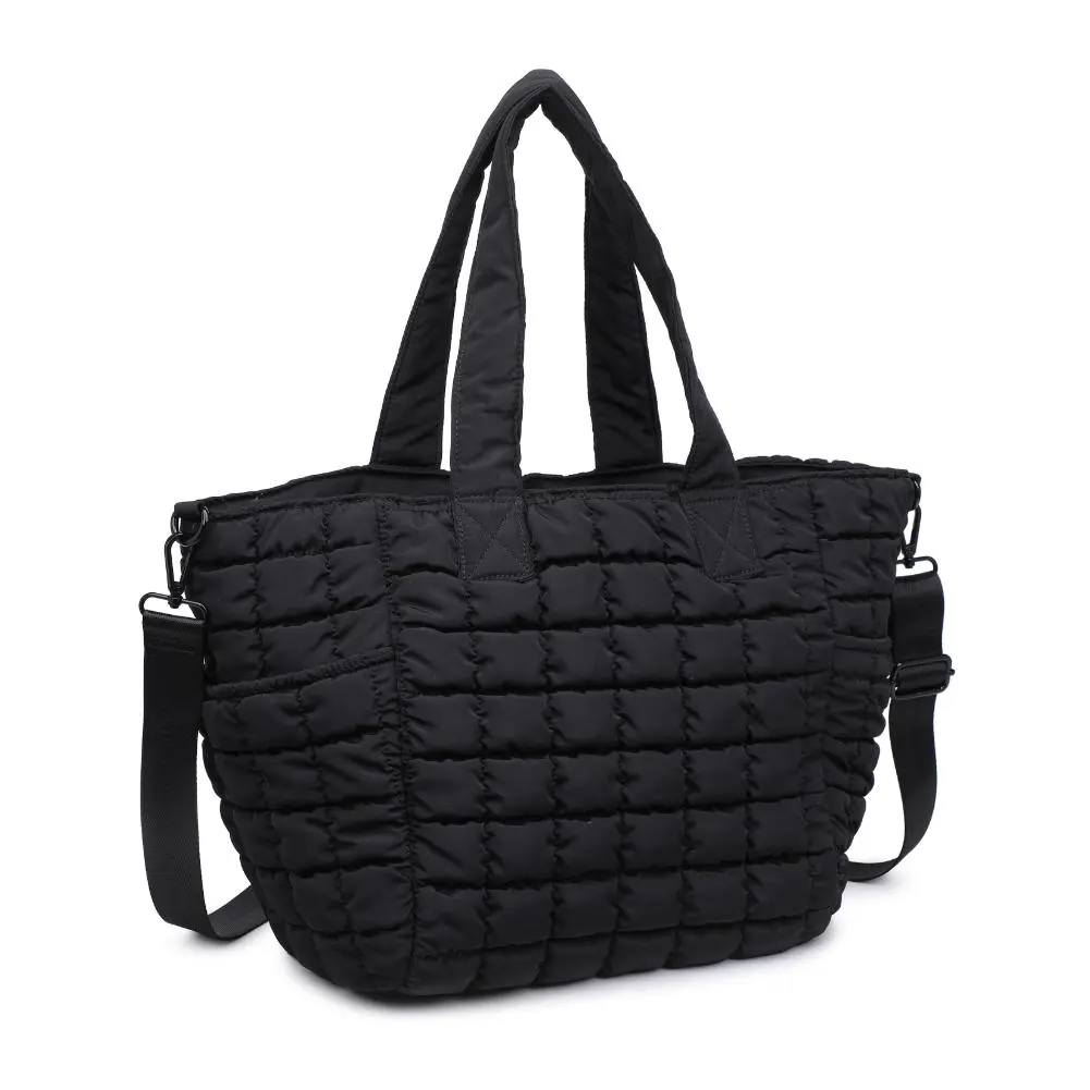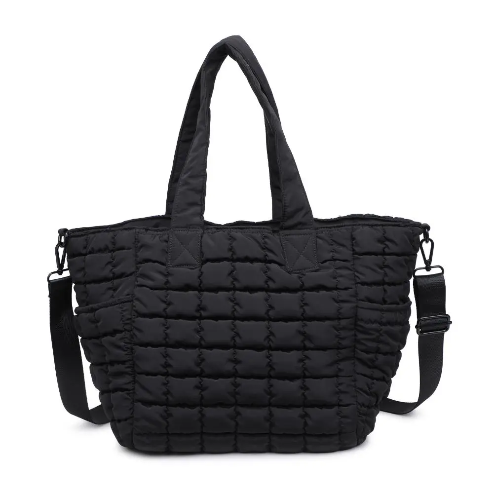 Meet your new go-to tote! Made from durable nylon with a quilted design, this bag is as stylish as it is functional. With a secure zipper closure and convenient side pockets, you can easily stash all your essentials and keep them organized with the interior zip pocket and mesh pocket. Take it on your next adventure or use it for everyday errands - either way, you'll be sure to turn heads!