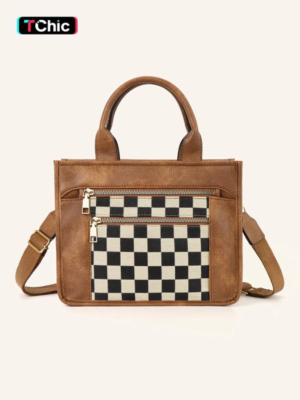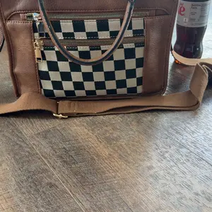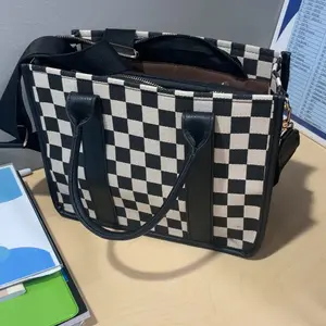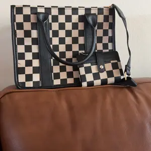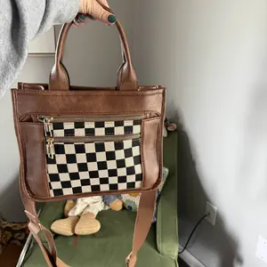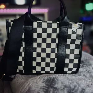 Okay but can we talk about this bag real quick? 😍 The black + white checkered print is giving edgy meets classic and I’m obsessed. It’s the perfect size fits all my stuff without looking bulky and I can wear it as a tote or crossbody depending on my vibe that day. 10/10 🖤🤍
