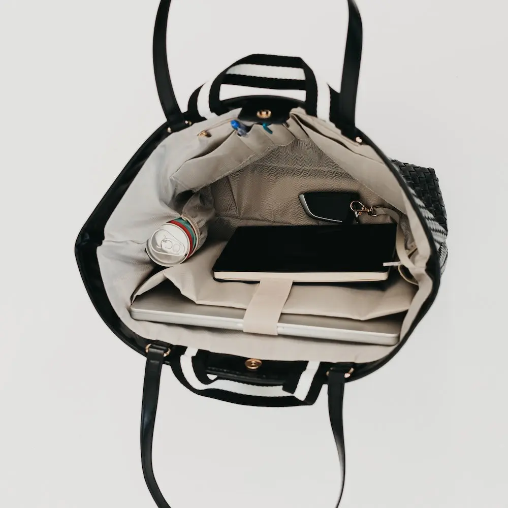 Meet the bag of your dreams, our Woven Tiffany Organized Tote Bag! This must-have bag is designed to keep your essentials organized and easily accessible.