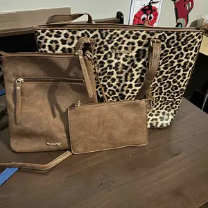I am pretty disappointed in the quality of these bags. For one, the small one they call a "wallet", it's a makeup bag, basically a pouch, no separation what so ever. The straps on the tote aren't well put together either. For the price, not impressed at all.