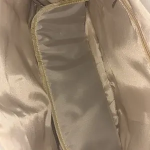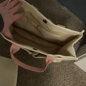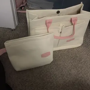 Es muy linda, trae su propia carterita que la puedes usar como cosmetiquera para tu maquillaje o lo que sea es lo suficientemente grande para usarla para poner tus toallas sanitarias etc, me encantó el tamaño de la cartera más grande para llevar cuadernos en ella o hasta una computadora o iPad❤️❤️