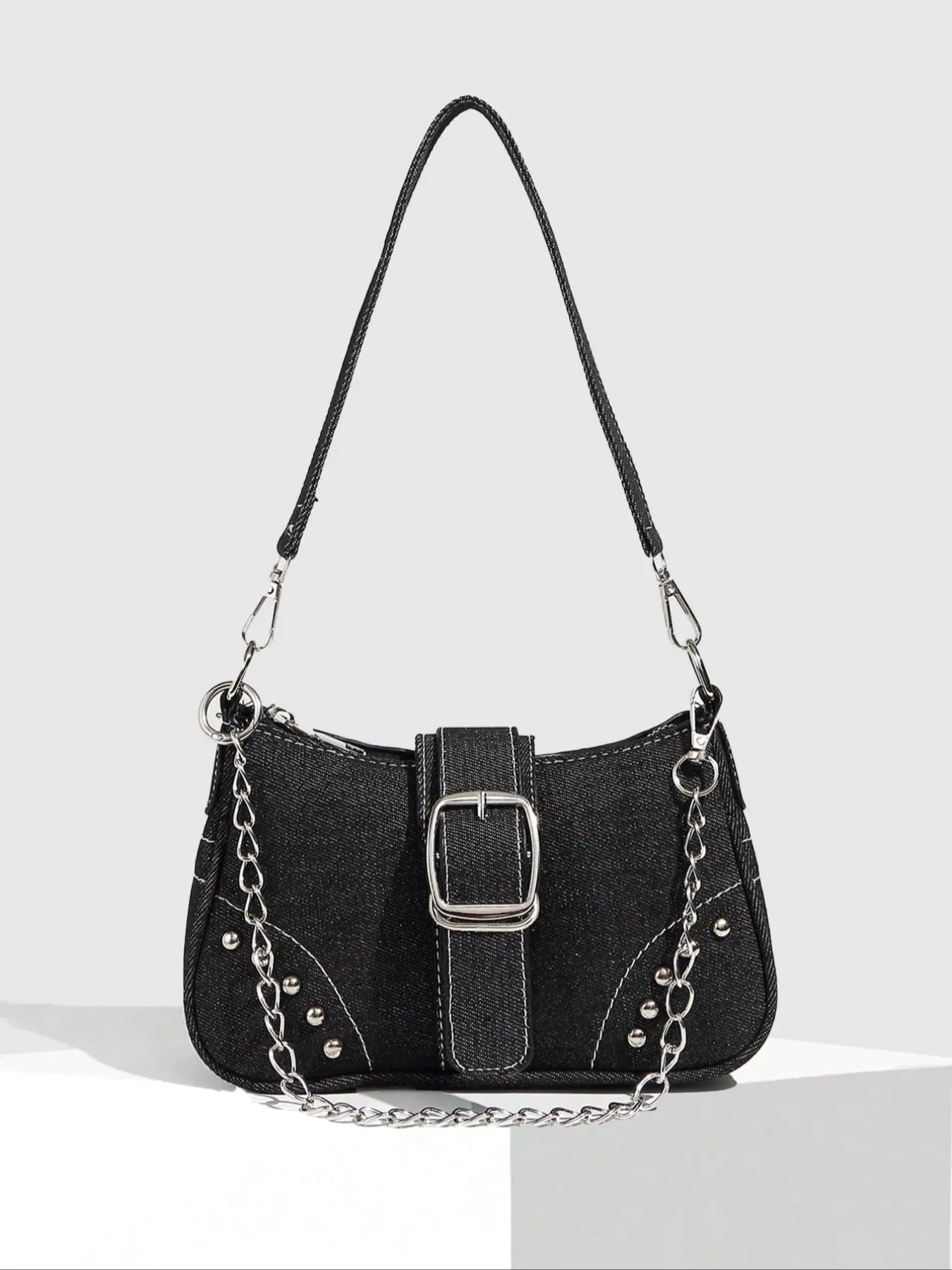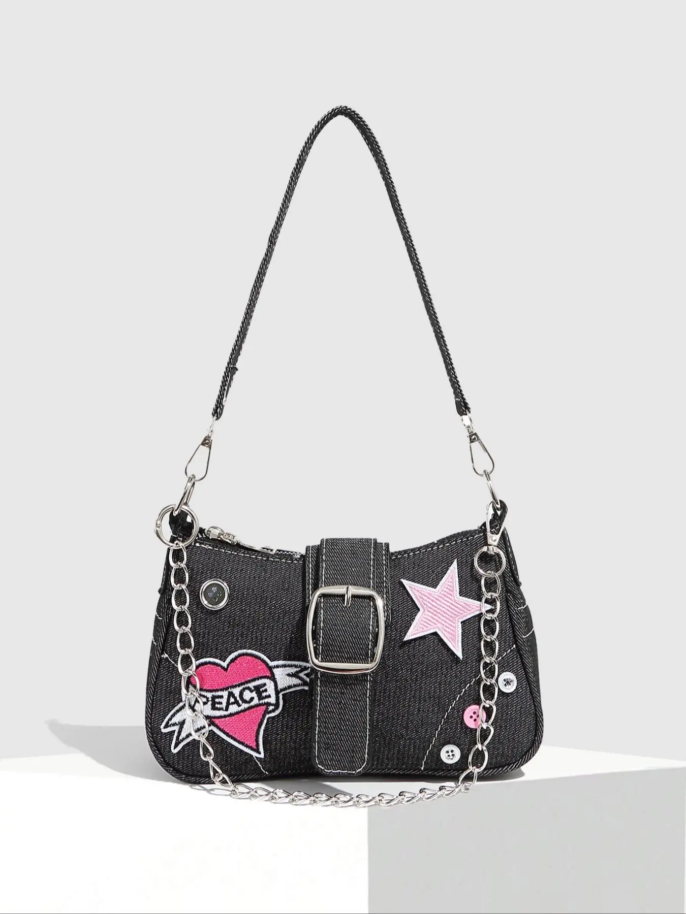 Women's Fashionable Star Patched Shoulder Bag, Vintage Y2K Style Chain Decor Underarm Bag for Daily Used, Casual Trendy Versatile High-quality Daily Commuting Bag, Crossbody Chain Bag