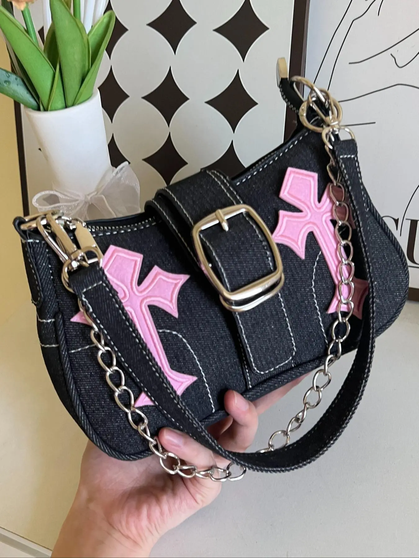 【Star Patched Elegance】: Boasting unique star patches, this shoulder bag adds a quirky touch to the Y2K fashion revival, making it a standout accessory.