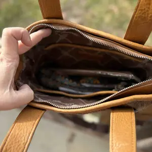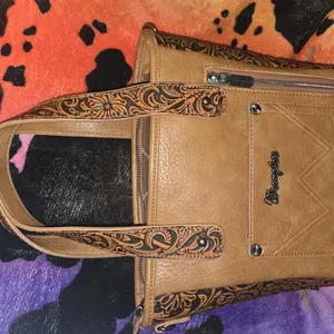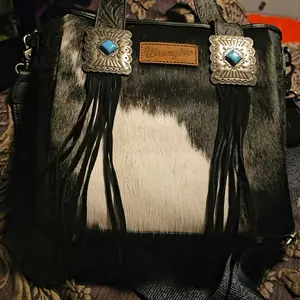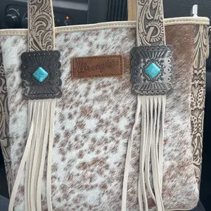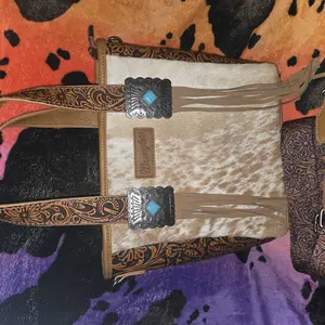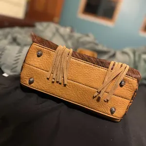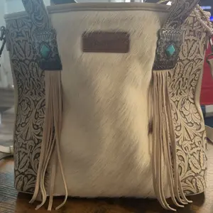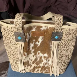 This purse is beautiful. I had the large tote and had to get the mini. From the PU leather, to the tooling and the cowhide with the fringe and concho detail she's the chefs kiss.