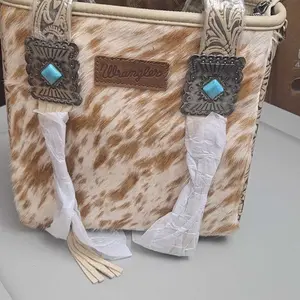 So I ordered this for my sister-in-law for Christmas and what I got was not what was described. I wanted a cowhide wrangler purse and that is what I was spending my money on and not only did it come in without cowhide but also came in smaller than expected.
