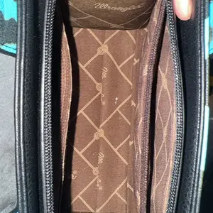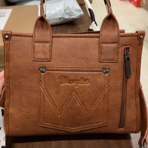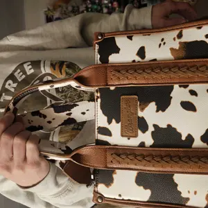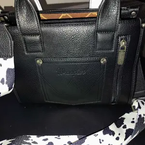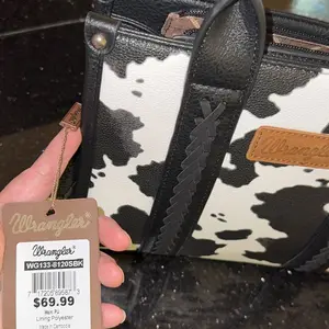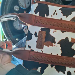 First wrangler purse from this company I am impressed with the material and quality of work . I love the coloring throught out and it's comfortable.