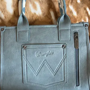 Iâve been anxiously awaiting for this bag to arrive. This is a nice darker light blue that goes beautifully with my wrangler Jean collection