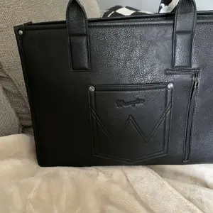 It is so cute! I’m obsessed! Some wrangler bags I’ve had are stiff, this one is nice and soft which I love! Very spacious and fits everything perfectly!
