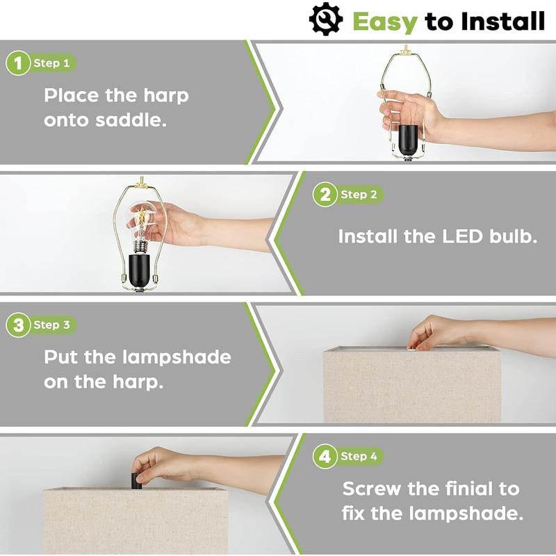 Each table lamp adopts a 'Harvard frame' (harp structure to support the lampshade), please choose bulb no bigger than type a19 for replacement.