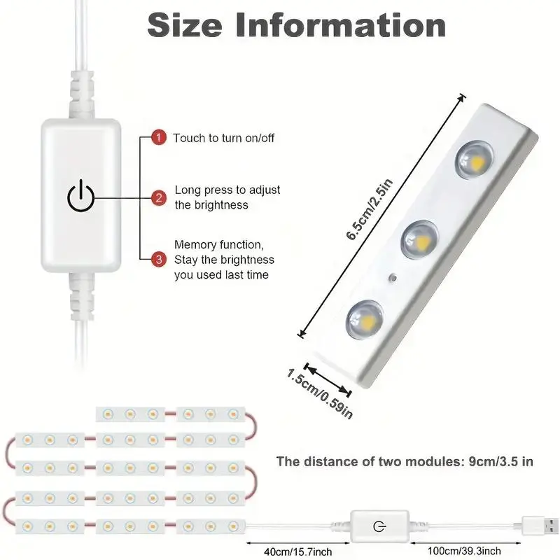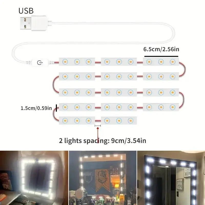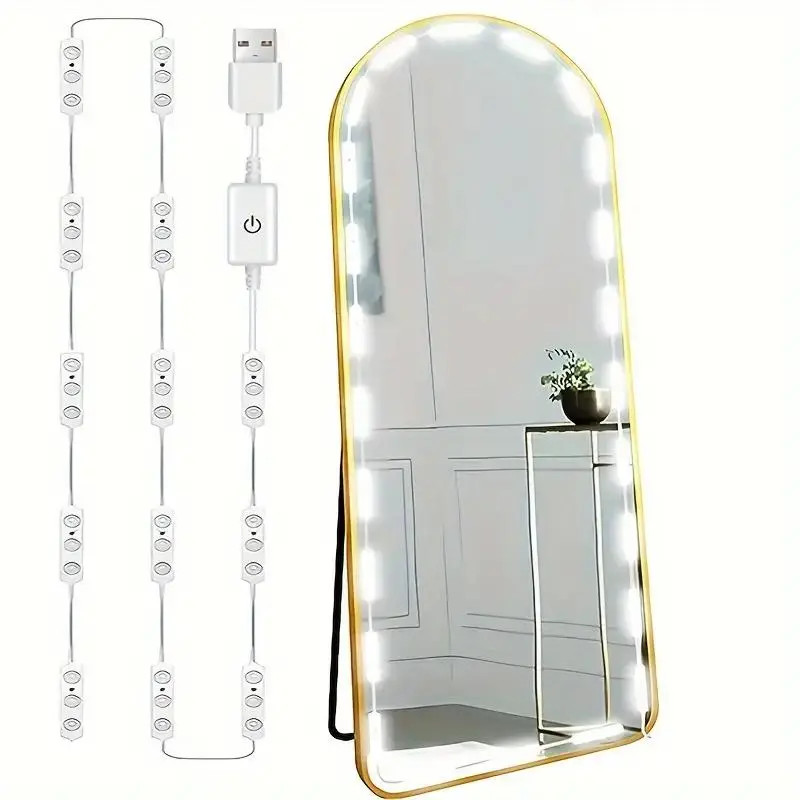 USB Powered Touch Sensor Makeup Mirror Light, Dimmable 42 LED Floor Mirror Light Strip, Lighted Makeup Mirror, LED Light for Bathroom, Bedroom, Dressing Room