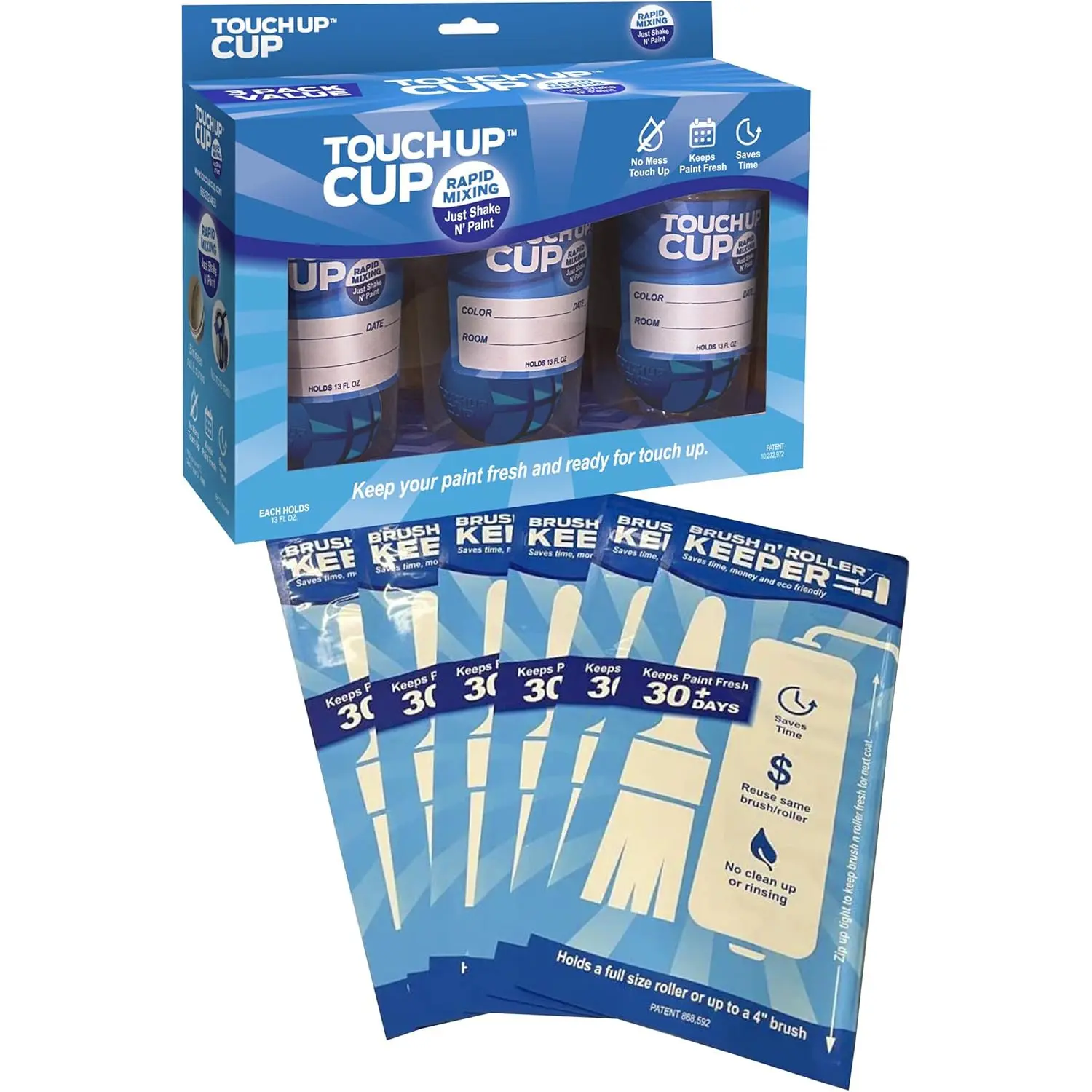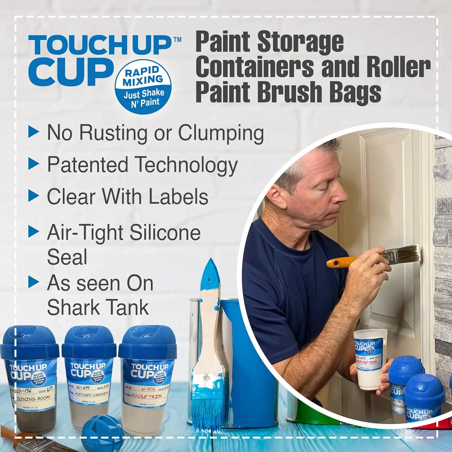 As Seen On Shark Tank Products- Touch Up Cup Paint Storage Containers and Roller Paint Brush Bag, 3 Plastic Painting Cups with Lids, 6 Bags