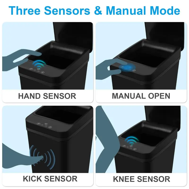 3 Kinds of Trash Can Opening Modes: You can choose to open the trash can by sensing your hand, pressing the top of the trash can or simply touching it. It is very convenient to use.