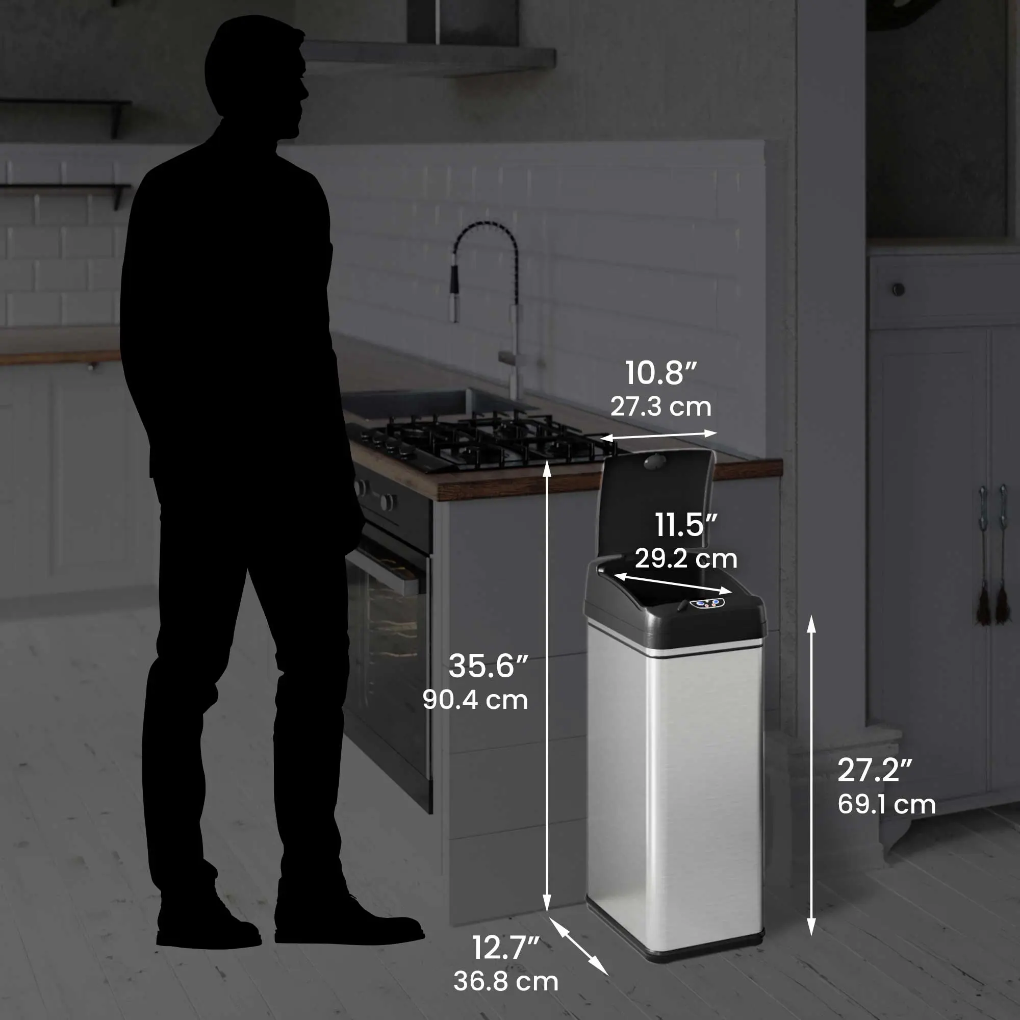 13 Gallon Touchless Sensor Trash Can with Locking Lid – Stainless Steel