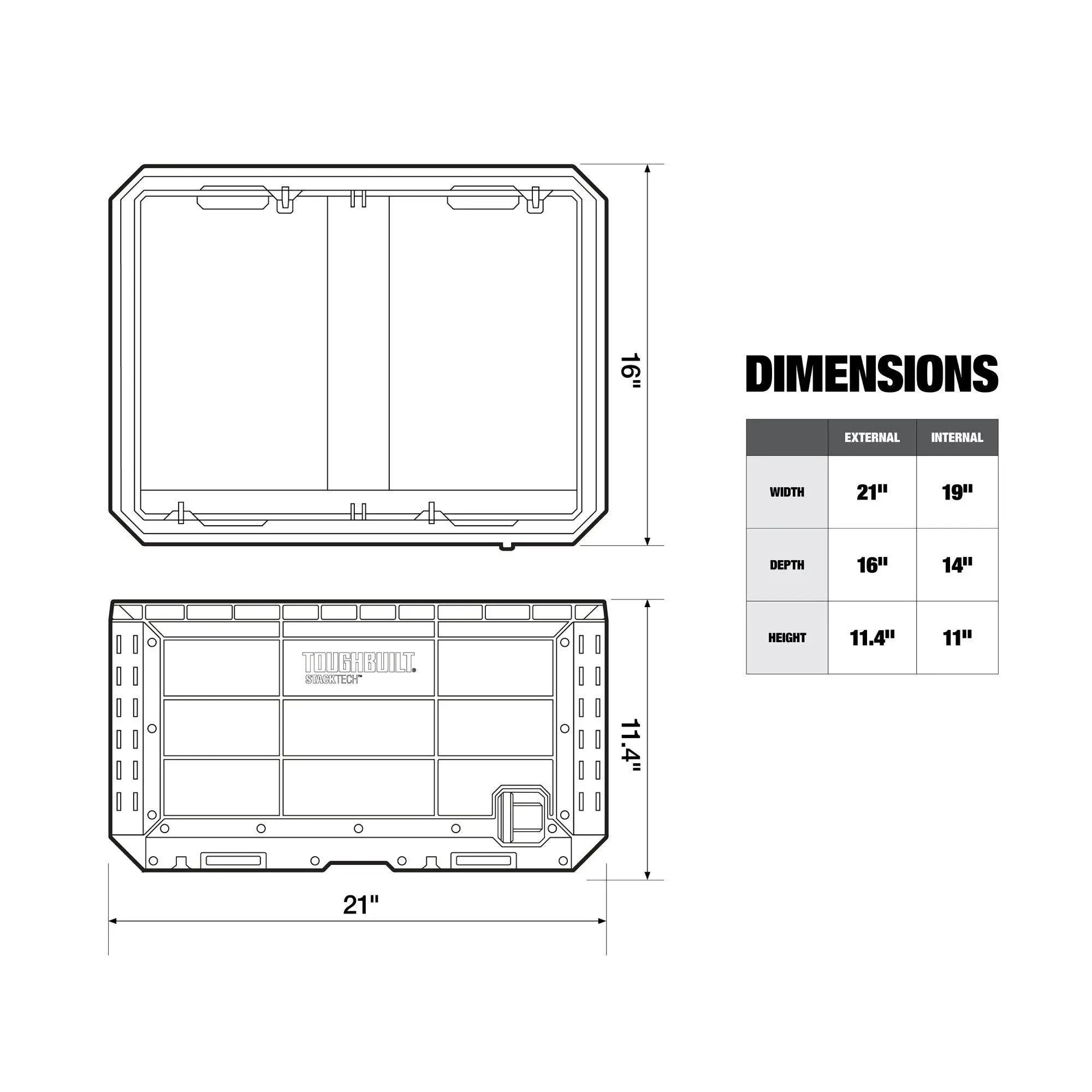 Rugged tool crate features a self-aligning base that nests securely onto any full-size StackTech tool box for fast, stable stacking