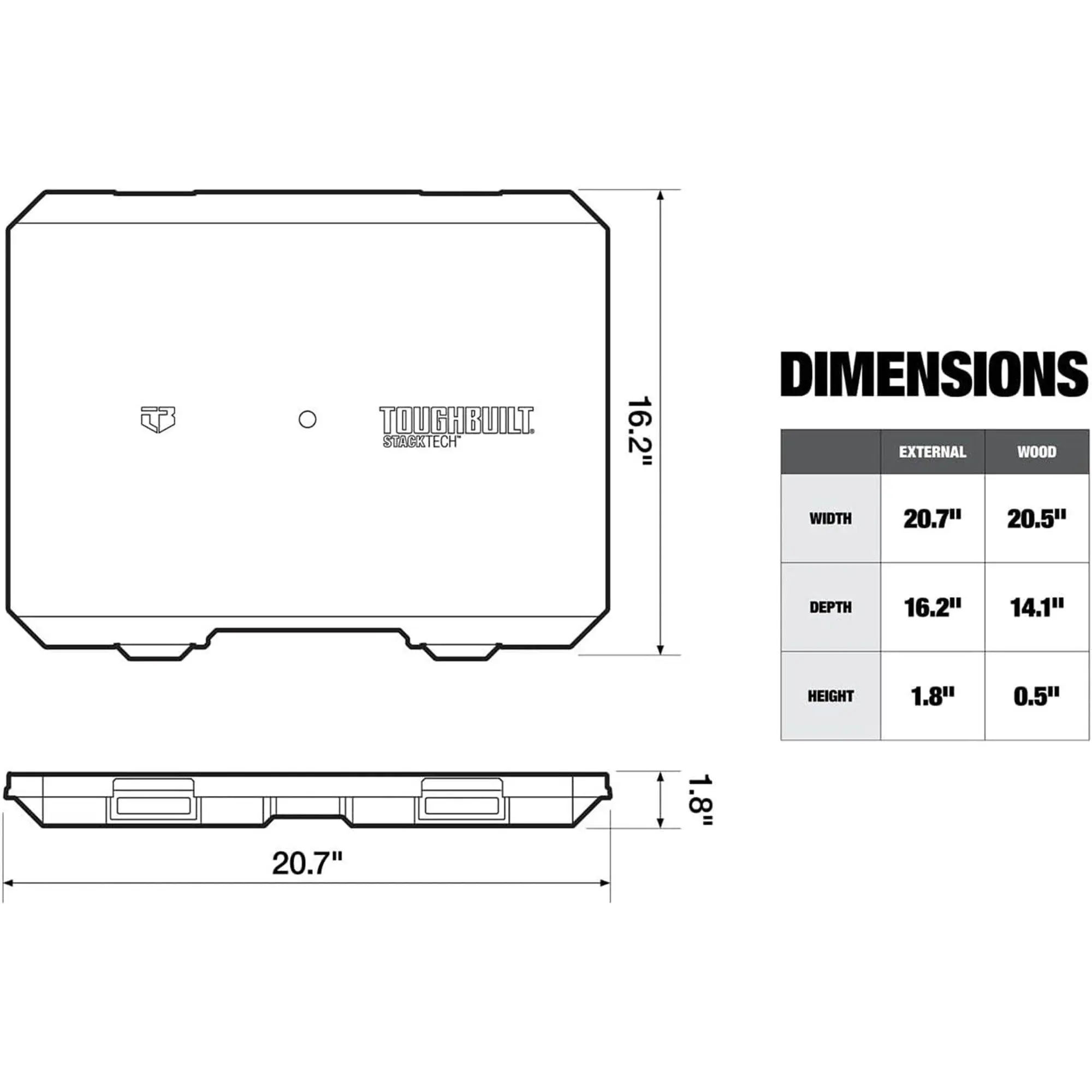 Take your mobile tool setup to the next level with the ToughBuilt StackTech Work Surface, a versatile add-on designed to expand the capabilities of your modular system. Built for professionals who demand flexibility and durability, this premium work surface transforms your StackTech setup into a reliable work station that’s ready for any jobsite, garage, or shop environment.This heavy-duty bamboo wood top provides a strong, smooth platform for a wide variety of tasks—from precision measurements to heavy assembly work. Known for its natural resistance to wear and tear, bamboo delivers long-lasting performance while maintaining a clean and professional look. Whether you're cutting, drilling, or organizing, this desktop is built to handle it all.Installation is fast and secure thanks to an auto-locking mechanism that activates when the top is dropped into place. Need to remove it? Just push two levers for a quick release—no tools required. Underneath the wood surface, you'll find hidden storage compartments ideal for keeping small tools, fasteners, or accessories organized and within reach.Need a refresh? The wood top is completely replaceable with just one screw, making it easy to maintain over time. Plus, a built-in ruler gives you instant measuring capability right at your workstation, ideal for quick adjustments and accurate cuts. Whether you're setting up in a workshop or building a portable jobsite system, the StackTech Work Surface helps you stay efficient, organized, and ready for anything.