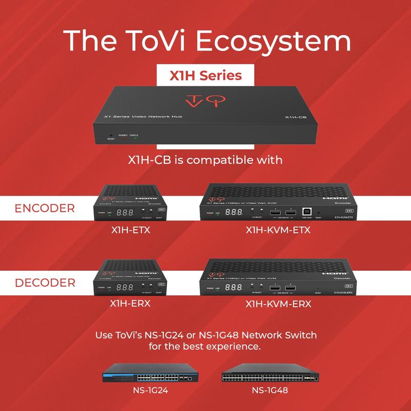 · H.264/H.265 IP Video Control Support – Optimized for use with ToVi’s X1H series for efficient AV signal management.