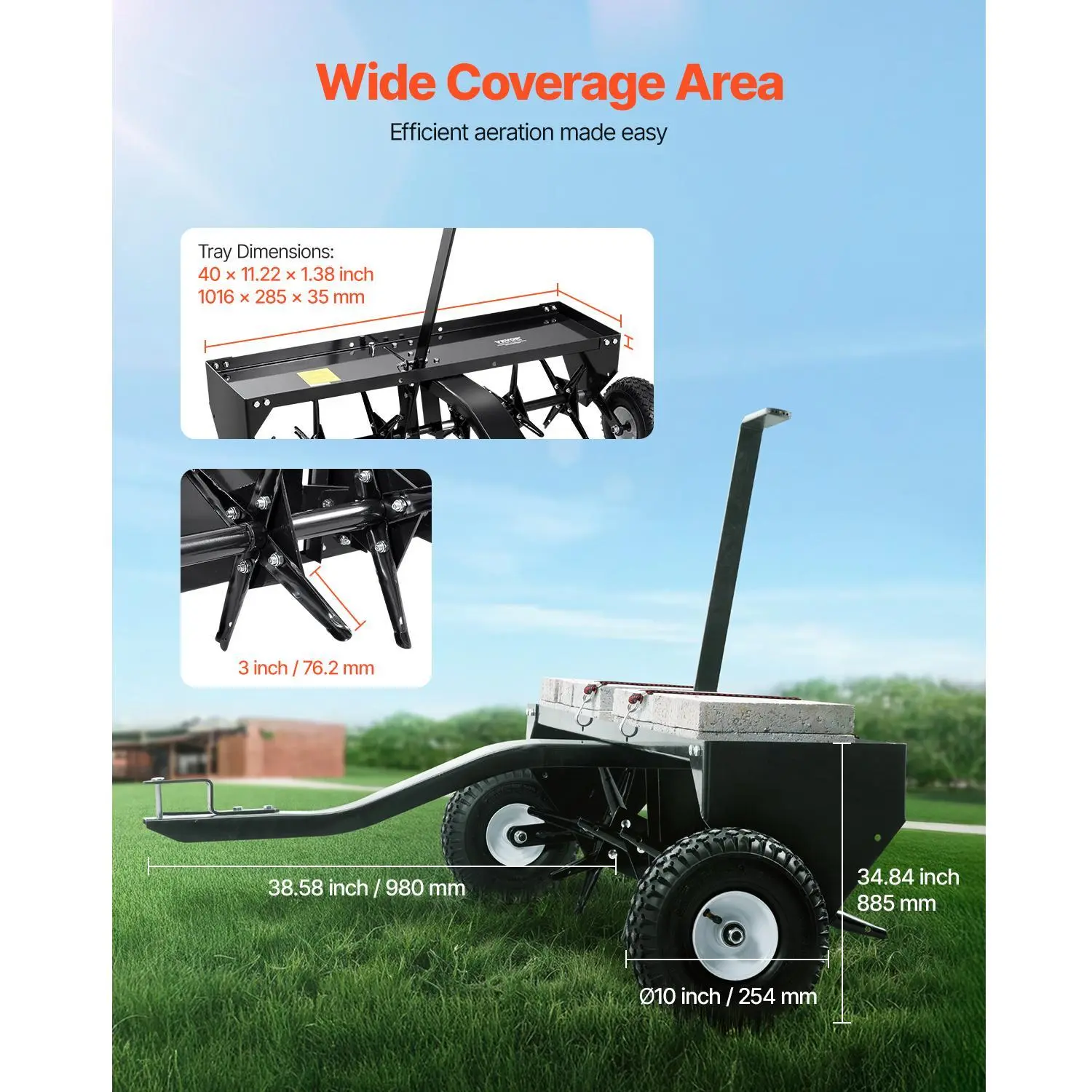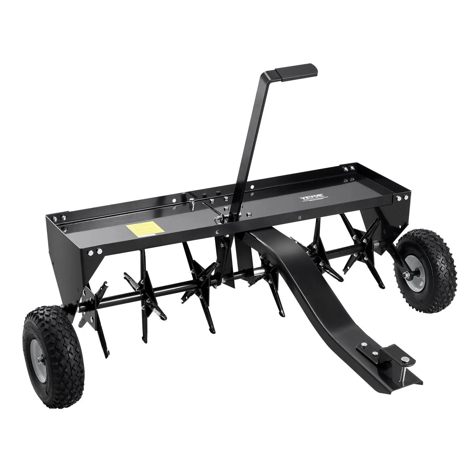 • 100lbs Load Capacity: The high-load capacity tray of tow behind aerator allows you to place heavier items, increasing the spike penetration power. Each spike is designed with a protective edge to reduce risks. The reinforced bars and universal hitch easily connect to various tractors and are durable and long-lasting.