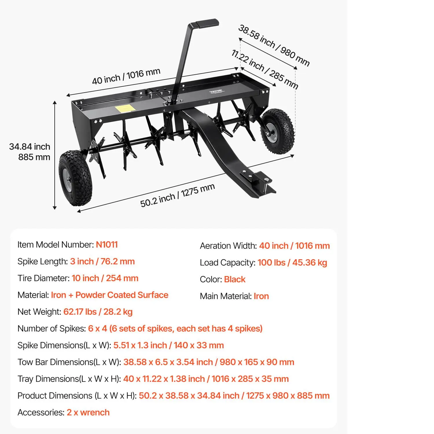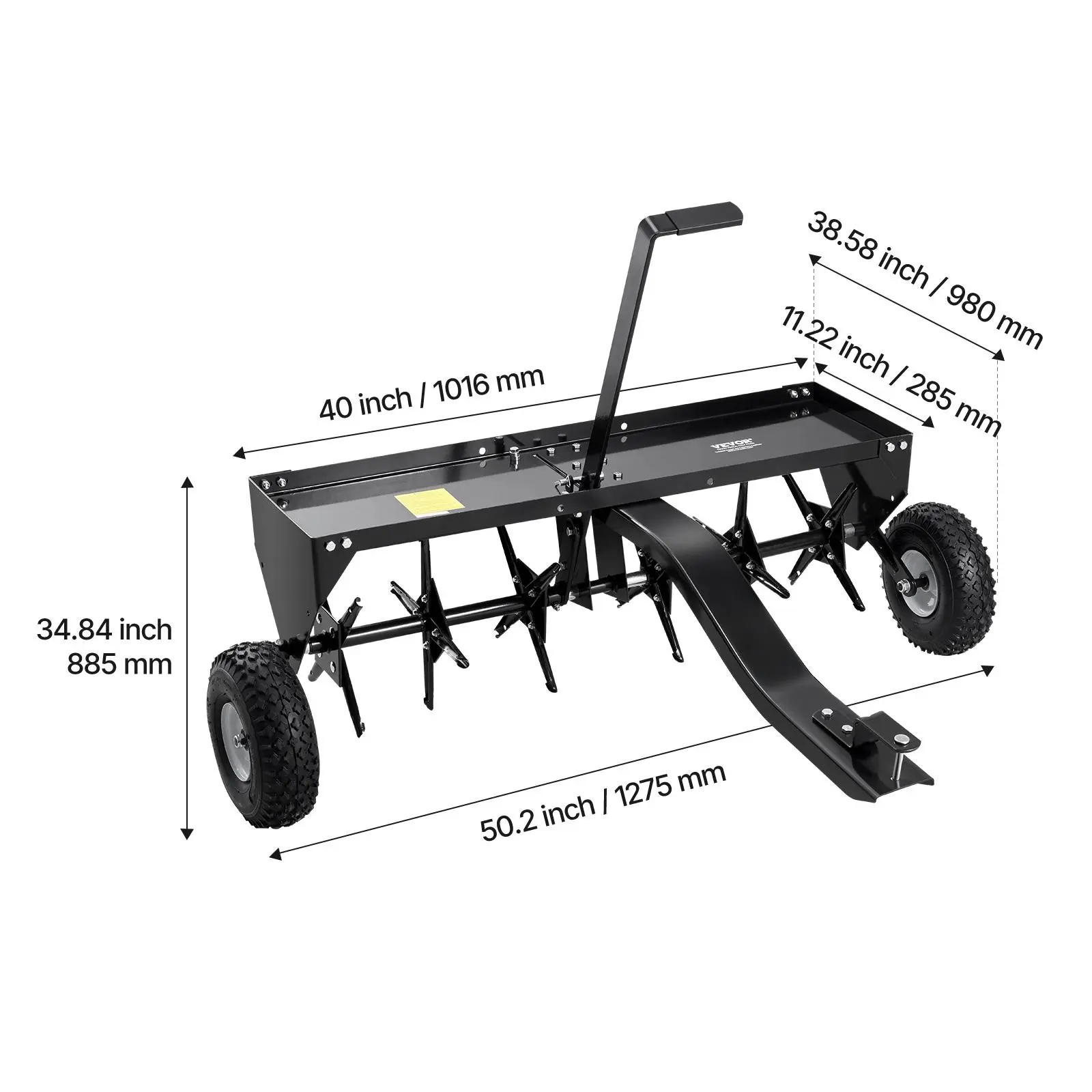 • 100lbs Load Capacity: The high-load capacity tray of tow behind aerator allows you to place heavier items, increasing the spike penetration power. Each spike is designed with a protective edge to reduce risks. The reinforced bars and universal hitch easily connect to various tractors and are durable and long-lasting.