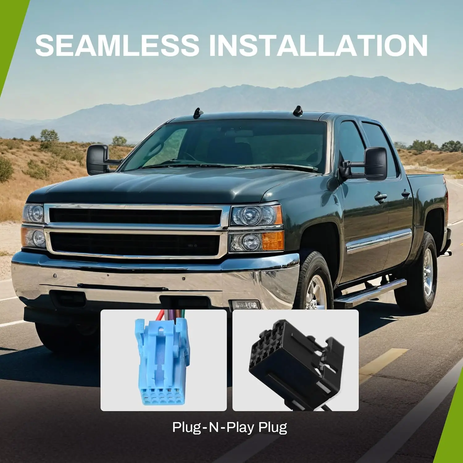 Simple installation: just simply connect the plugs of the trailer towing mirror to the corresponding power cord, no drilling or modifications required(professional installation would be highly recommended)