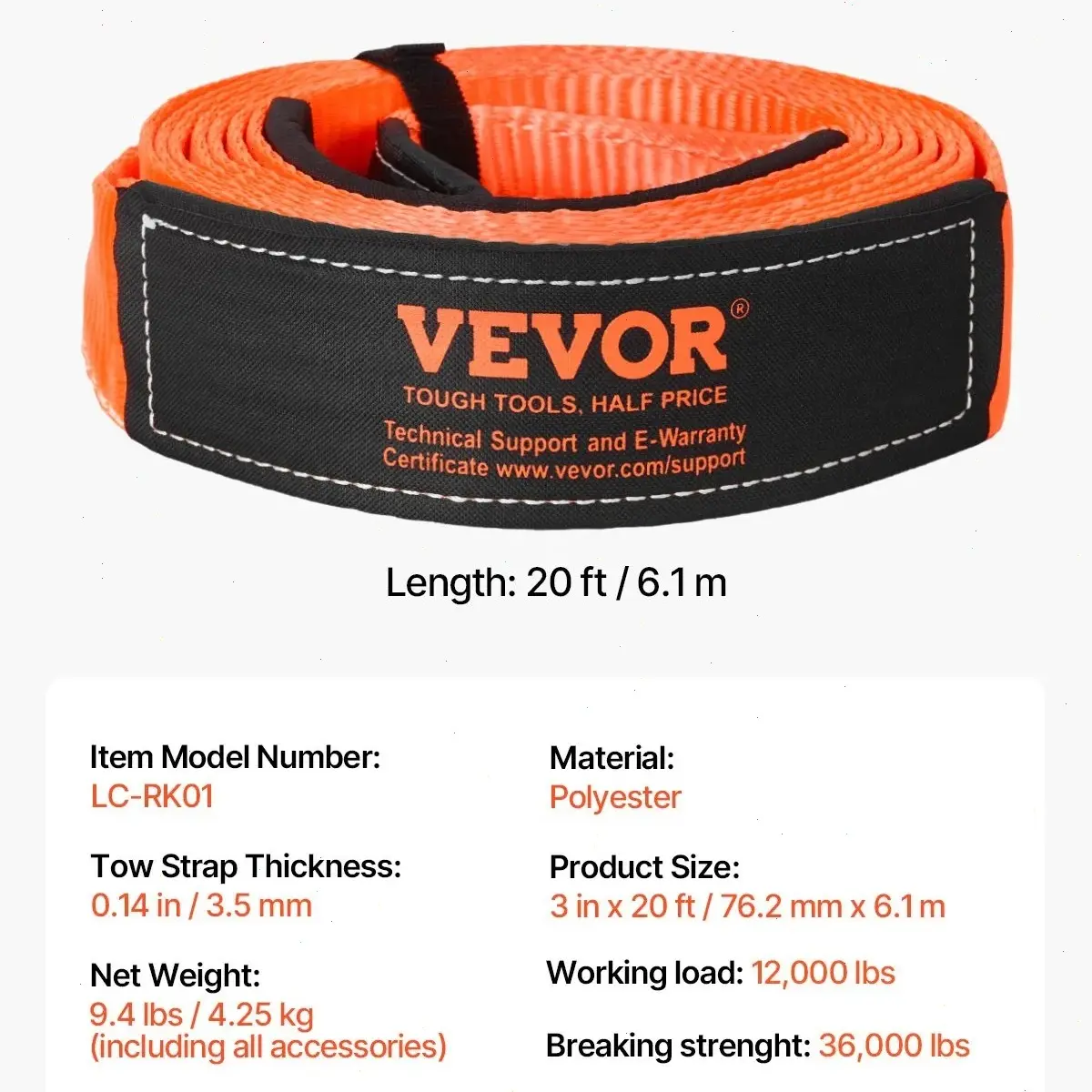 ·Heavy-Duty Tow Strap Kit: With an impressive 36,000 lbs breaking strength, our tow strap is ideal for towing trucks, off-road vehicles, and heavy equipment. At 20 feet long and 3 inches wide, it's your go-to for tackling any rugged terrain or emergency situation. It comes with everything you need: a tow strap, two 3/4" D-ring shackles, and a storage bag.