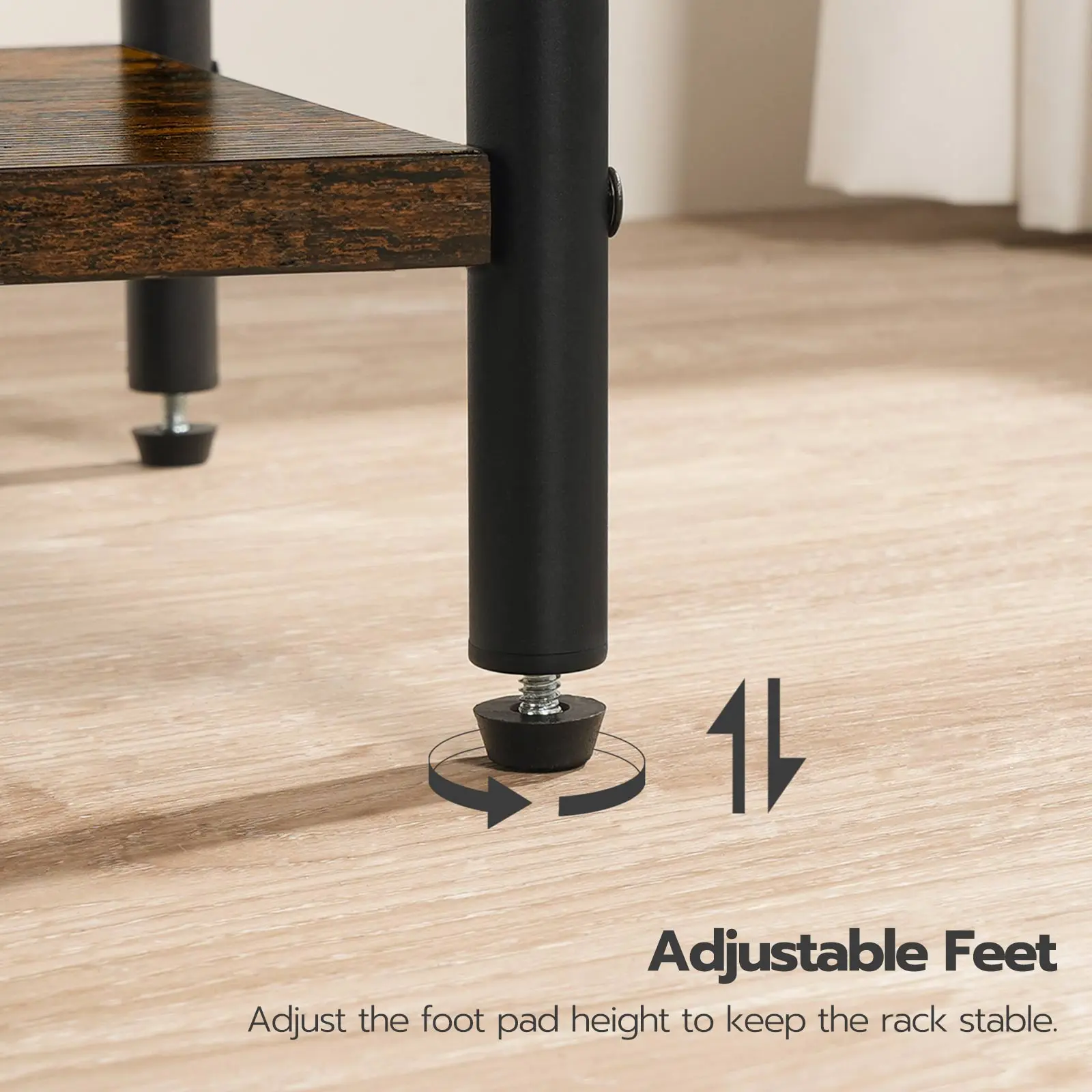 Four non-slip adjustable feet easily adapt to all kinds of uneven ground without leaving scratches.