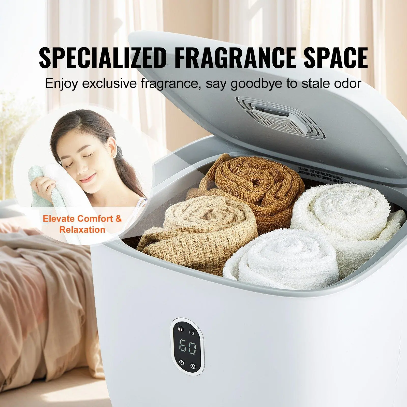 ·Customizable Fragrance: The smart towel warmer bucket is equipped with an aroma placement area, you can insert various fragrance discs or essential oils soaked pad to give your towels and blankets a unique scent. Enjoy a delightful aroma every time you use your towels and blankets.