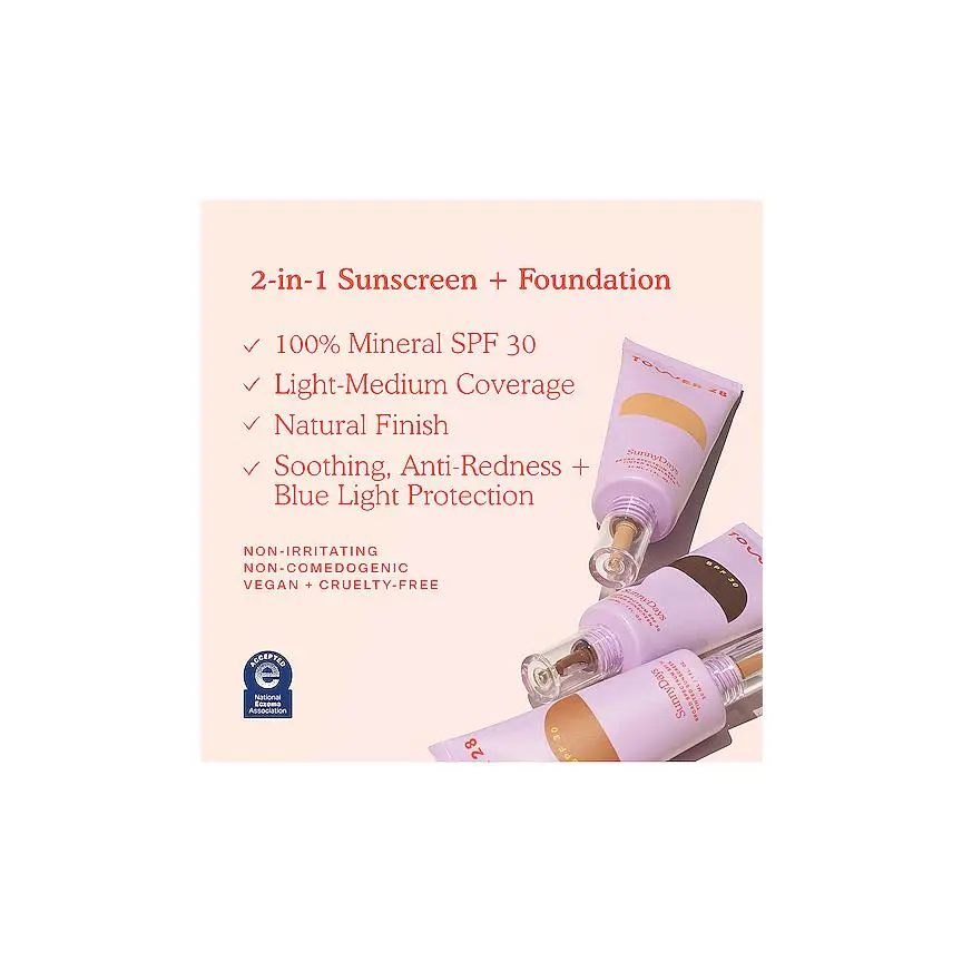 ·SunnyDays is a 2-in-1 mineral sunscreen foundation with SPF 30 that evens redness, protects from sun damage and blue light, and soothes UV-stressed skin while maintaining a natural finish so your real skin (freckles included) can have their moment in the sun