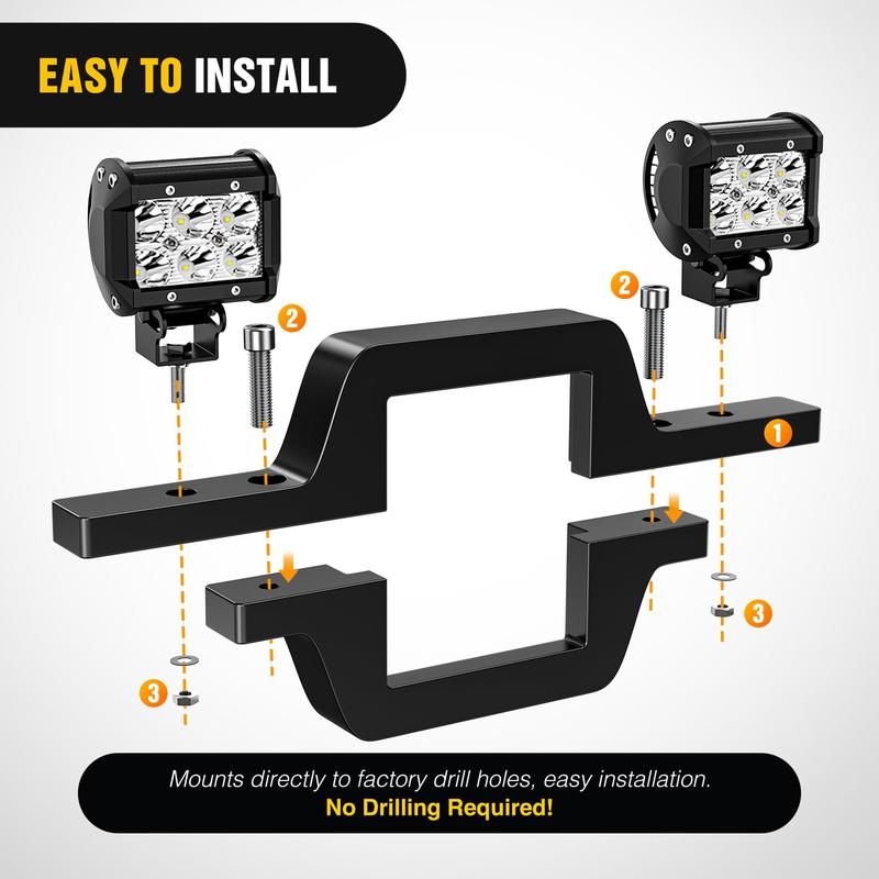 You can freely install the lights according to your needs. The mounting bracket fits for LED pods, dual lights, backup reverse lights, etc.