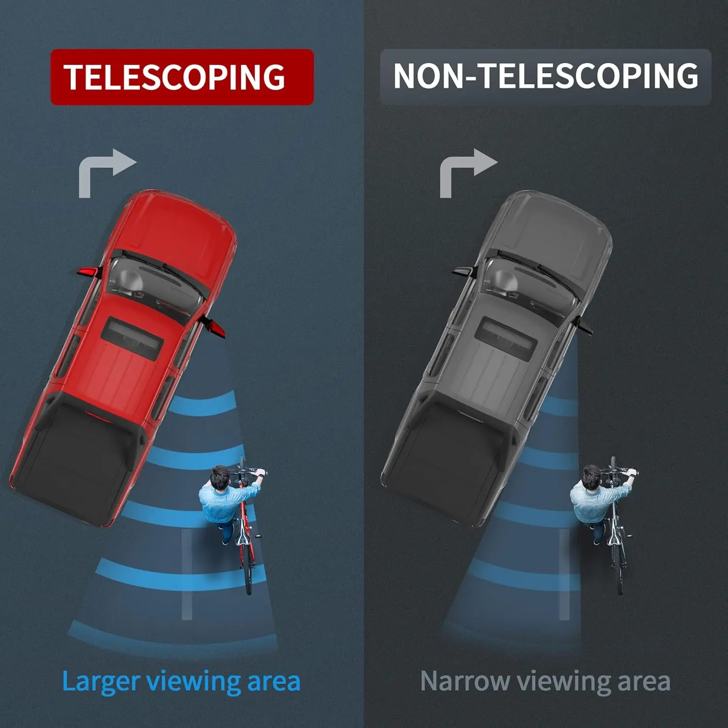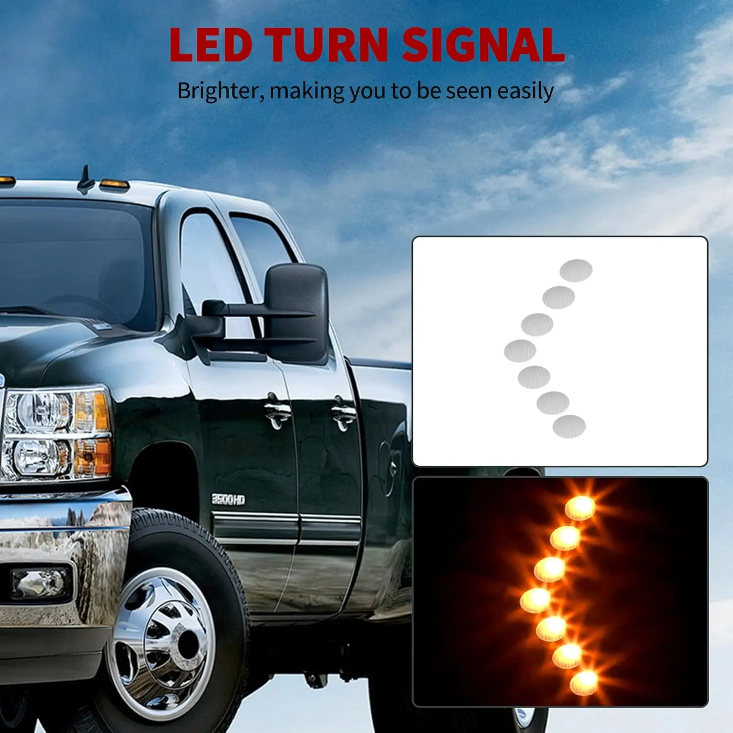 Functions: featuring power adjustable & power heated plane mirror, manually adjustable convex lens, LED turn signal, manual telescoping & folding, the multifunctional side mirrors can strikingly enhance your driving experience