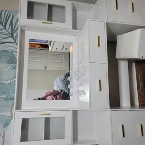 ·【Large Storage Capacity】The size of the makeup vanity set is 58.3" W*15.7" D*55.1" H. The makeup desk provide the perfect space to store and organize your makeup and skincare products, perfumes, jewelry and more in different places. It has a spacious tabletop ,8 drawers and 2 cabinets ( adjustable shelves in the cabinet to meet your needs for various sizes of items ). The makeup desk will keep your dressing and grooming environment well-organized.