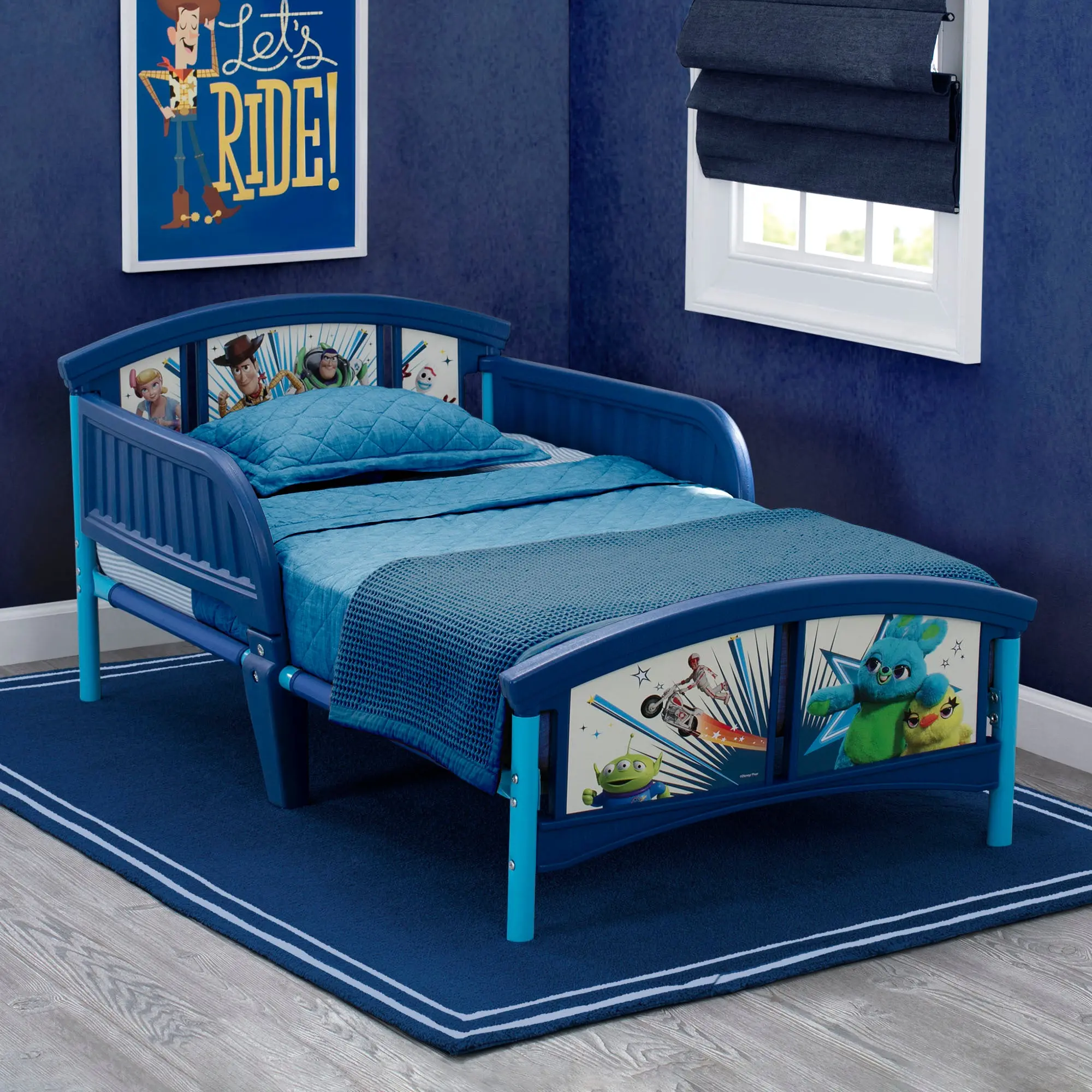 You’ve got more than a few friends on this Toy Story 4 Plastic Toddler Bed by Delta Children. With vibrant graphics of your child’s favorite characters, you can depend on Buzz, Woody, Little Bo Peep and newcomers, Forky, Duck and Bunny to make bedtime fun, each and every night! Designed with a low height for easy access in and out, plus attached guardrails, this safe toddler bed is must-have for your little one as they make the transition from crib to big-kid bed. First bedtime…then infinity and beyond!