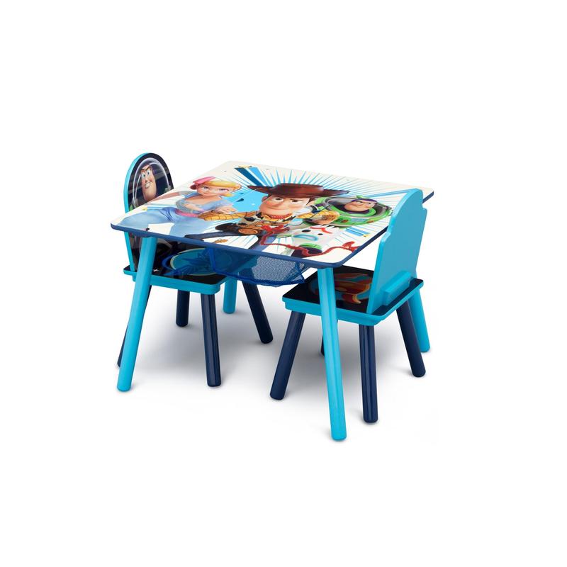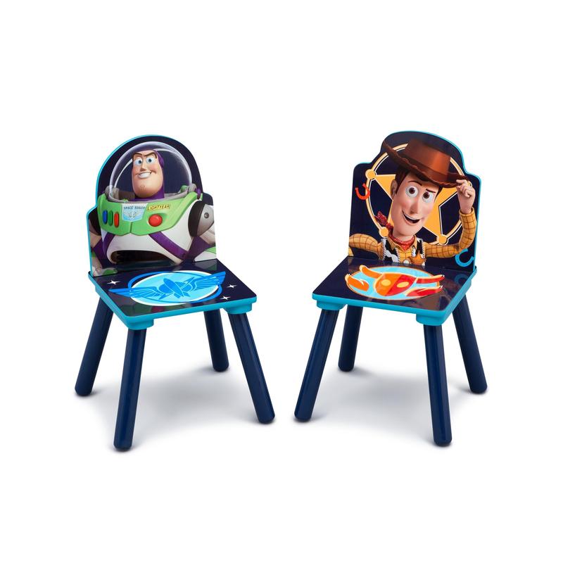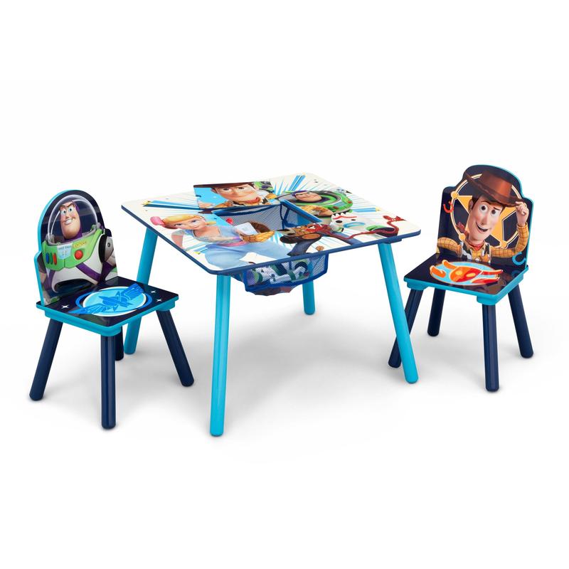 The toys are back in town with this Toy Story 4 Kids and Table and Chair Set with Storage by Delta Children! Featuring full color character art of Woody, Buzz Lightyear, Little Bo Peep and newcomer, Forky, this table and chair set will help launch imaginations to infinity and beyond. Making any activity extra-special, this kids table and chair set features a table and two chairs, designed at the perfect kid-sized height, making it ideal for snack time, playtime or homework. Plus, a built-in storage compartment at the center of the table provides the perfect space to keep art supplies (as well as your child’s own precious toys!).