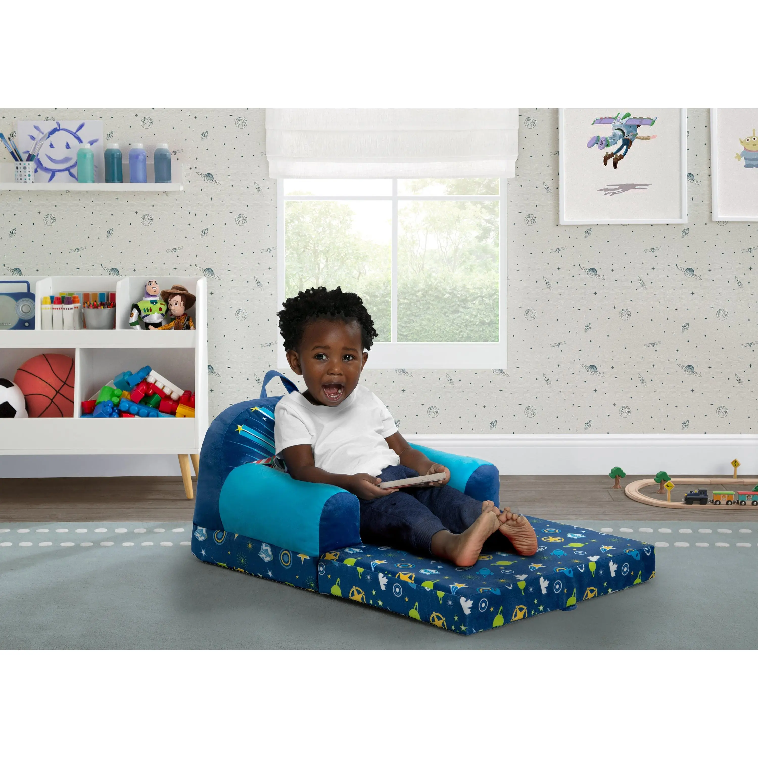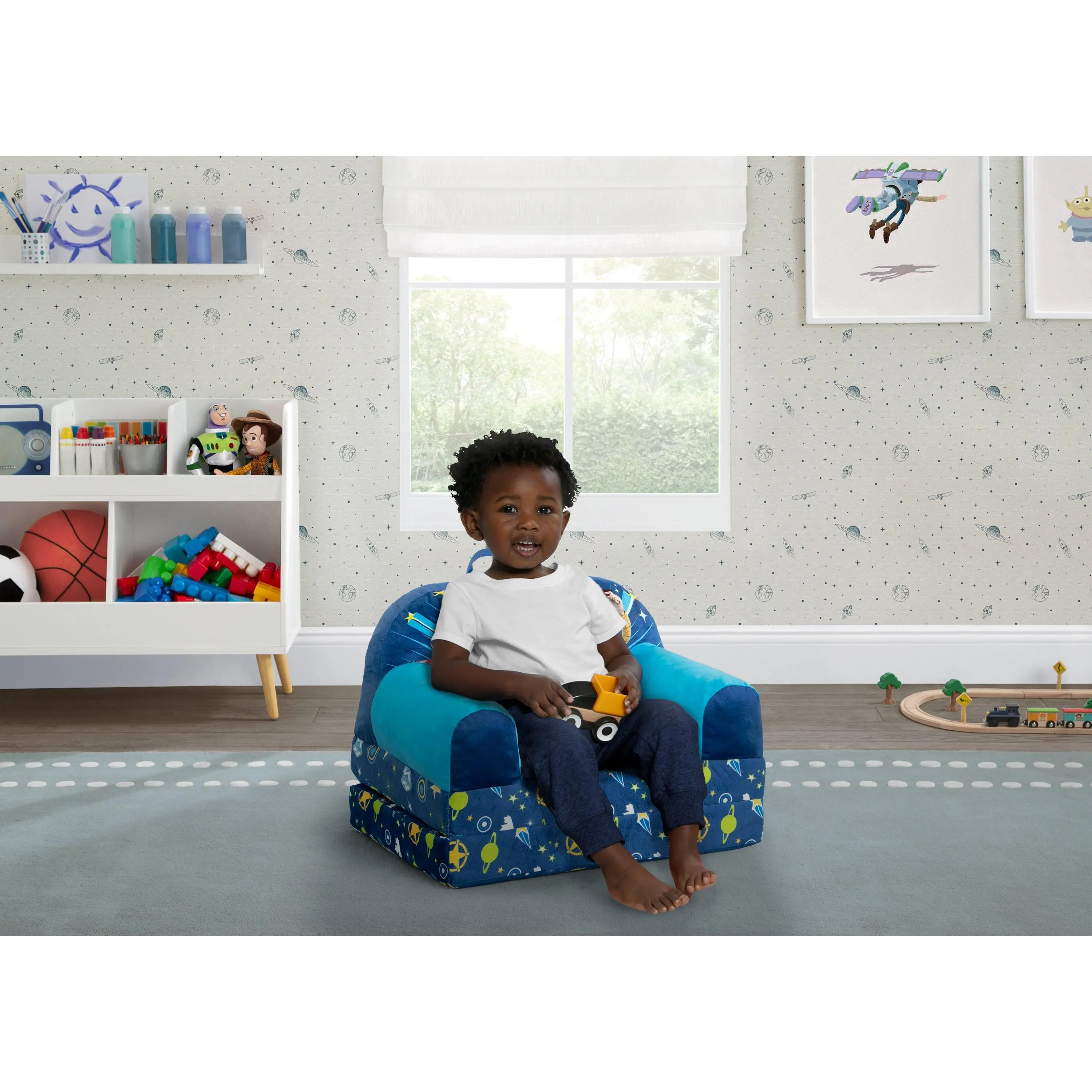Two comfy seats in one, this Toy Story Cozee Buddy Flip-Out Chair by Delta Children will surely be their favorite spot to relax. They’ll love to sit and read or watch their favorite movies on the chair but when it’s time for a nap, this seat flips out into a sleeper bed so they can stretch out. Designed to easily move anywhere in the house, this cozy toddler chair features a carry handle and secure hook and loop closure that ensures the chair keeps its shape. Plus, this chair is GREENGUARD Gold Certified, which means it’s built to contribute to cleaner air for a healthy home.