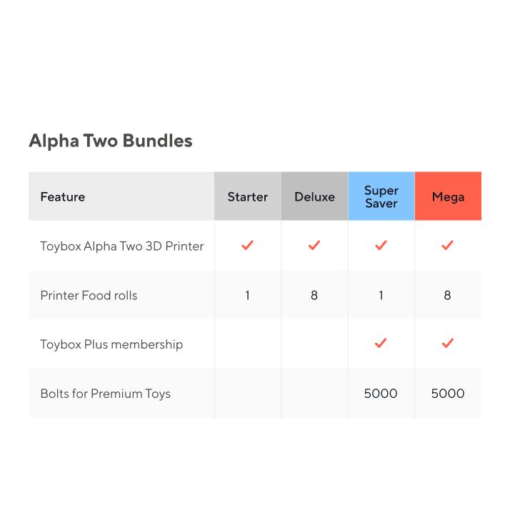 Toybox Alpha Two is the latest version of the first one-touch 3D printer for kids, designed to make toy-making even more fun! With faster speeds and improved durability, Alpha Two is built for long-lasting performance, perfect for young creators.