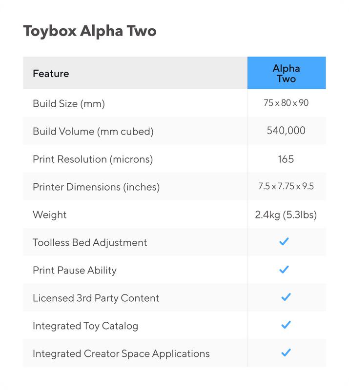 - One All New Toybox 3D Printer