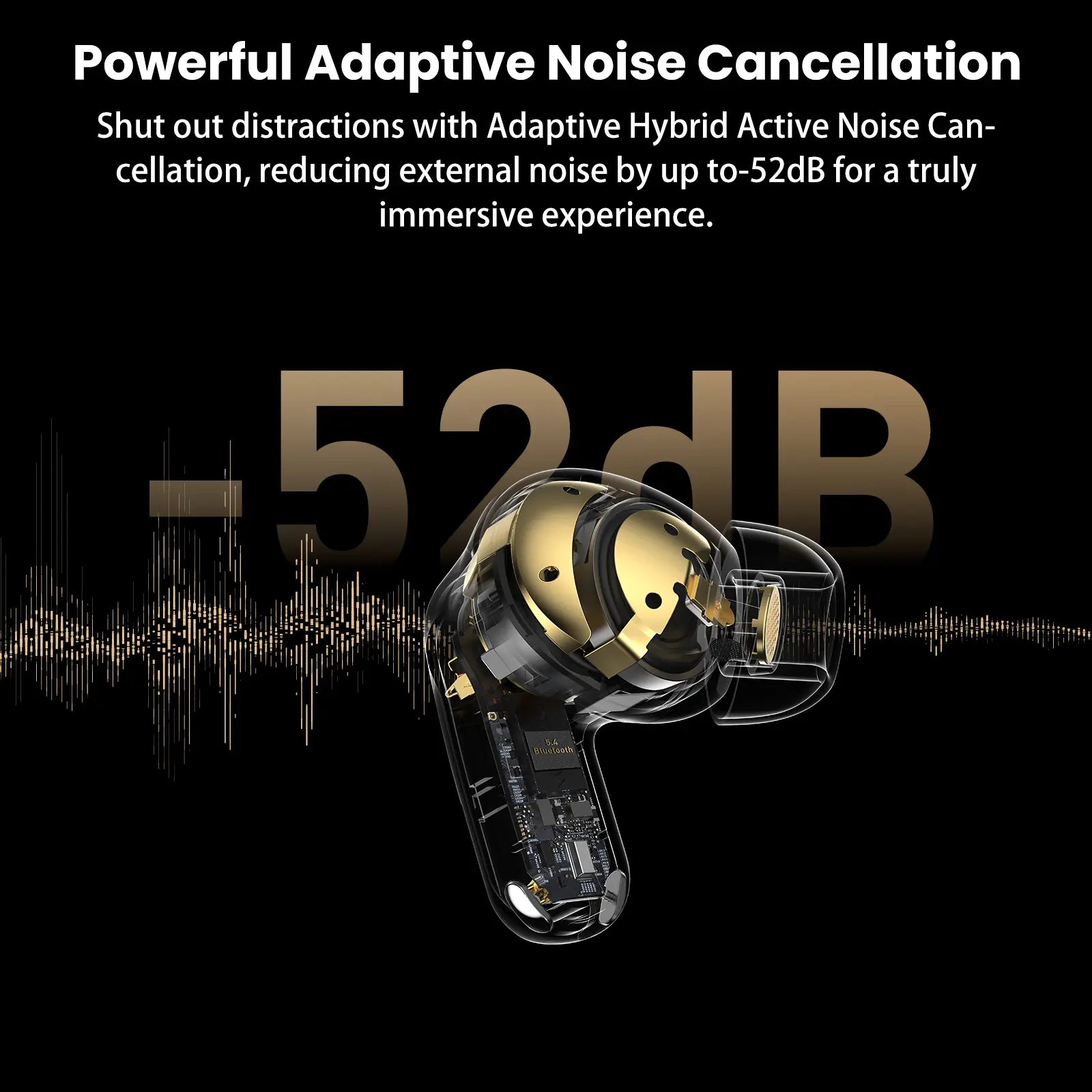 Adaptive Active Noise Cancellation (up to 52dB): The earbuds automatically monitor your environment and adjust the noise cancellation to ensure peace and quiet, or perfect call clarity.