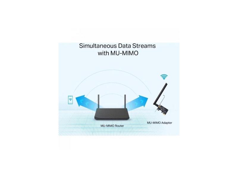 ·Highlights TP-Link AC600 Wireless Dual Band PCI Express Adapter T2E AC600 Dual Band Wi-Fi Receive Wi-Fi signals on two separate bands for all your online needs. Choose the 2.4 GHz band for browsing, email and social media, or switch to 5 GHz band for gaming and streaming.MU-MIMO for Higher Efficiency Works with MU-MIMO routers, which provide simultaneous data streams, boosting throughput and efficiency.Improved Security with WPA3 The latest Wi-Fi security protocol provides more secure and individualized encryption in personal password safety, protecting your home Wi-Fi from wireless hacking.Low-Profile Bracket Alongside a standard bracket, a low-profile bracket is also provided for mini towers. Customized options let you find a bracket that perfectly fits your board design. More from the Manufacturer