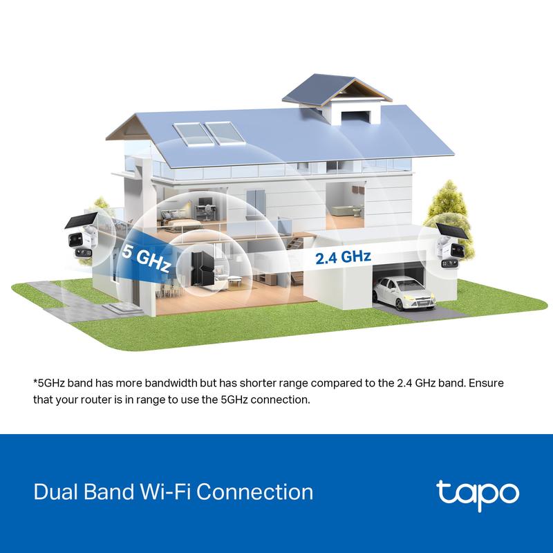 ·Dual-Band Wi-Fi Connectivity - The Tapo C645D supports both 5 GHz and 2.4 GHz Wi-Fi bands for speed and range flexibility. The 5 GHz connection offers faster connections at shorter distances while the 2.4 GHz connection provides a longer range.