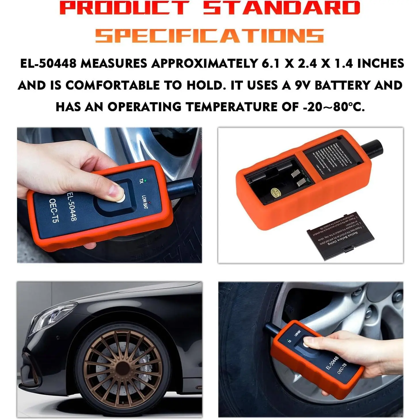 [Easy to Operate]This tire system programming training tool is easy to use, the first step is to install a new 9V battery, The second step is to make sure your vehicle is in learn mode and with the antenna in the correct position, then follow the maintenance procedure, and the third is to hold the tool firmly against the sidewall of the tire and approach the valve stem while pressing the learn button .(9V battery is not included in the package)