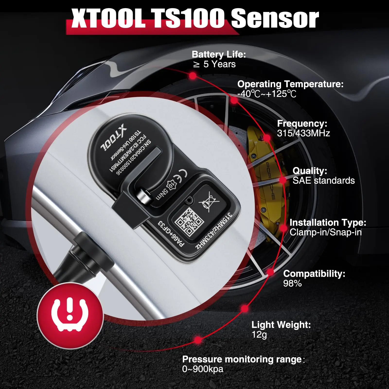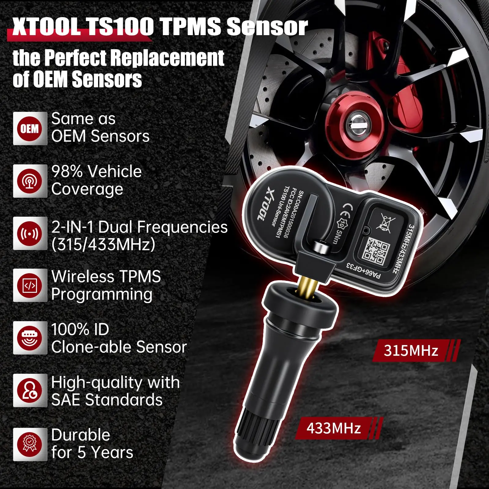 Ensure your tire pressure monitoring system is functioning optimally with the XTOOL TS100 TPMS Sensor. Its dual frequency operation and durable design make it an essential component for your tire pressure monitoring system.