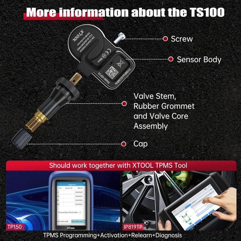 ·Compatibility: This TPMS sensor is compatible with XTOOL TP150 and TP150 IP819TP tire pressure monitors.