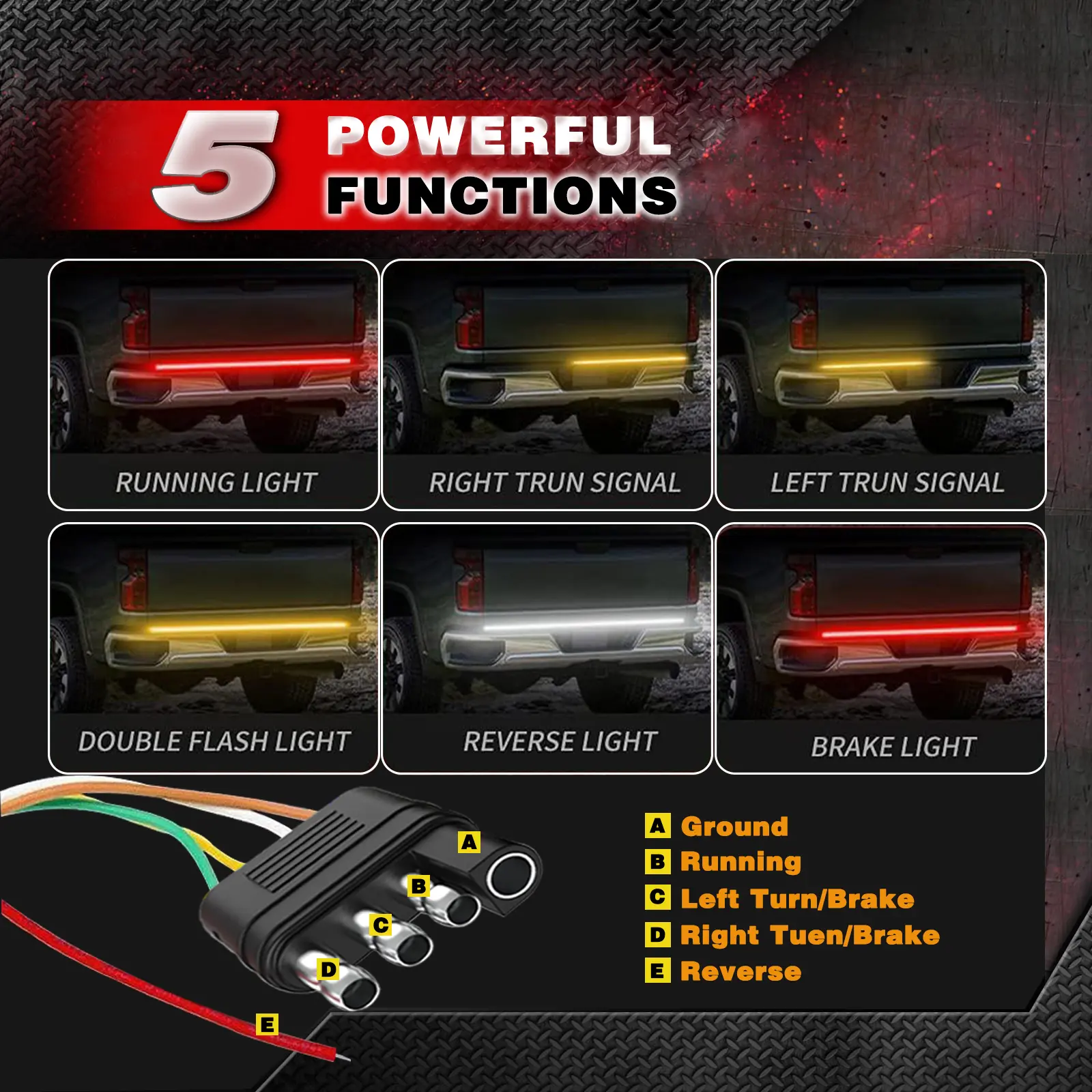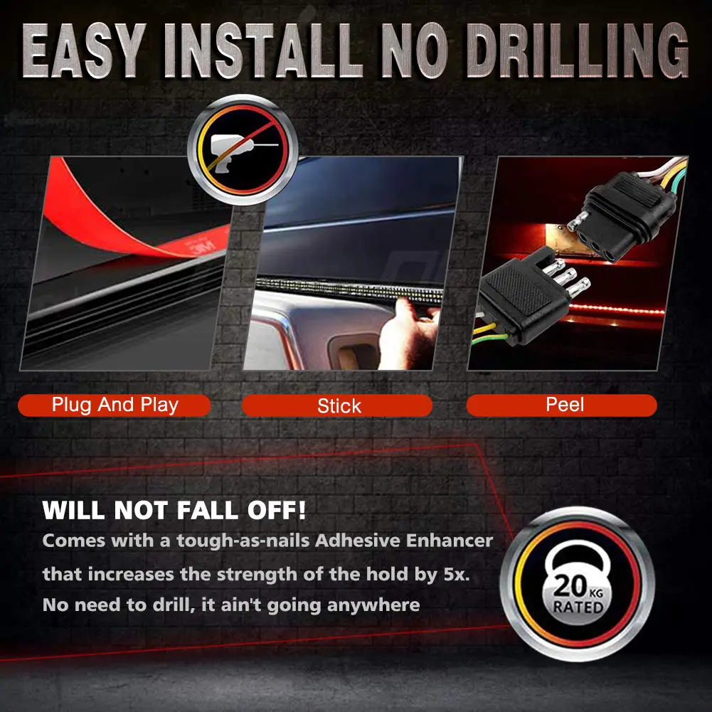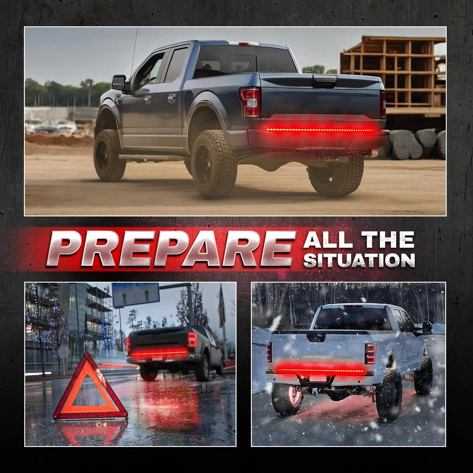This LED tailgate light bar is designed for universal use. It fits most trucks without modifications. The 60-inch length ensures ample coverage. Upgrade your truck's lighting system with the TR-04 Tailgate Bar.