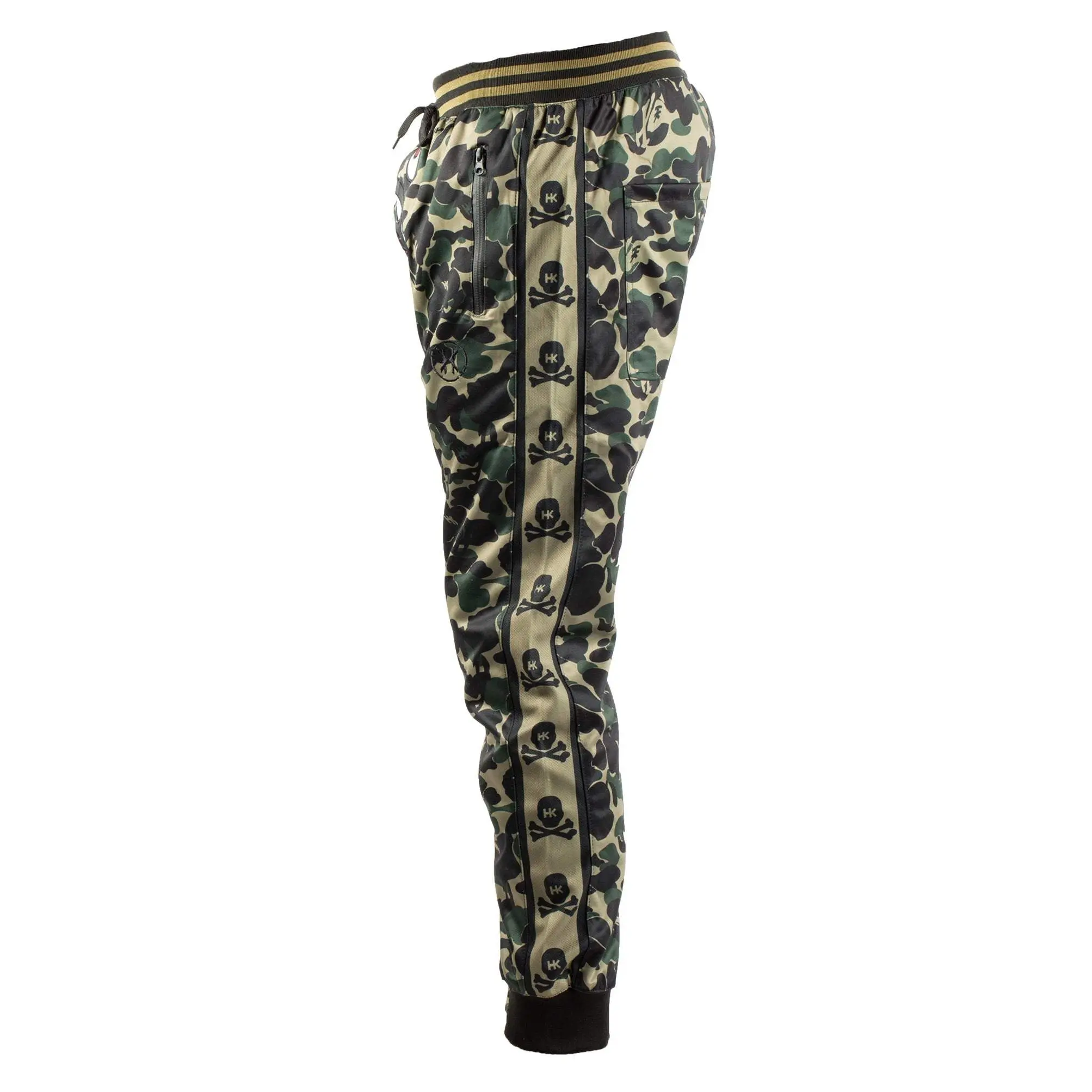 Introducing the HK Army Track Joggers. The Track Joggers are comprised of a premium knit poly blend for supreme comfort. Featuring custom printed vertical leg print, embroidery detailing and waterproof zipper pockets and zipper ankle openings.