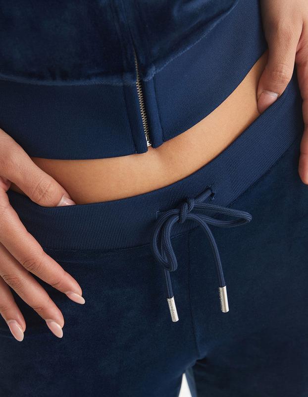 Juicy Couture OG Bling Track Pants. Our iconic Y2K Juicy embellishment brands the back of these velour pants and gives them a luxe twist. Set the vibe by pairing with your choice of jacket, tank, or rock solo. Inseam 32in. Rise 8in. Leg Opening 8 1/2in. Luxe velour: 95% Polyester, 5% Spandex. Top and bottom are each sold separately. Machine wash. Imported.